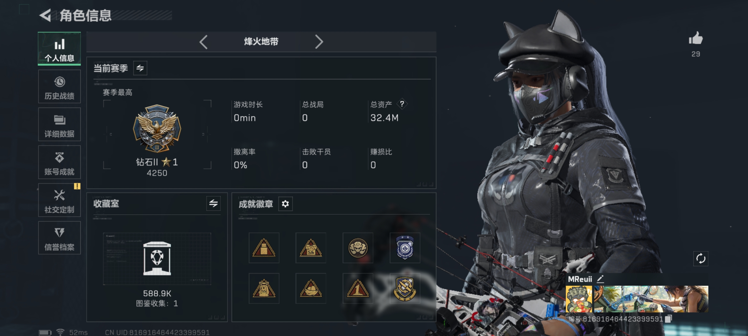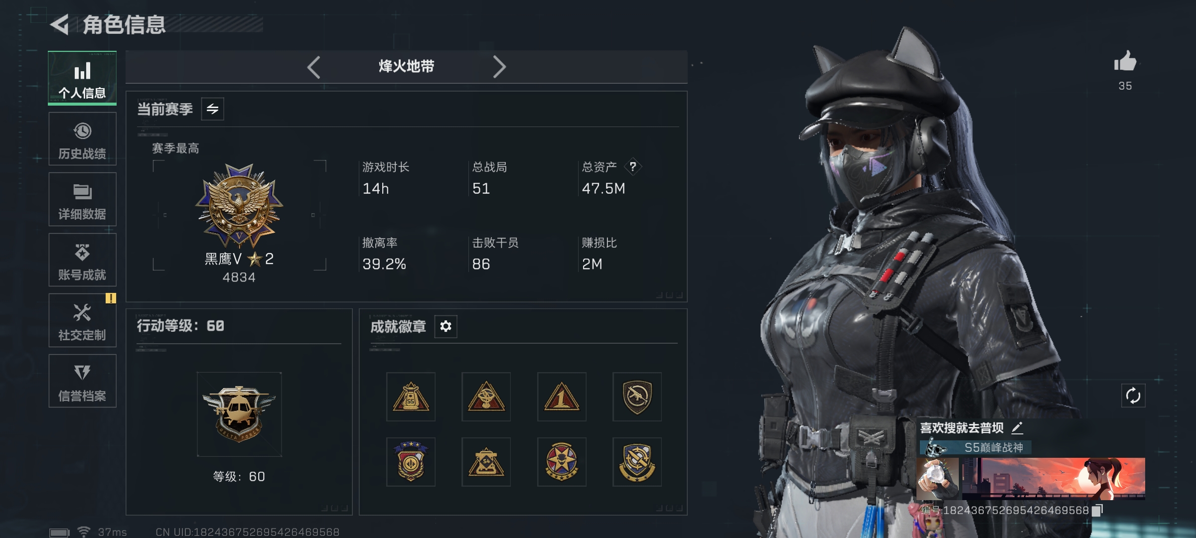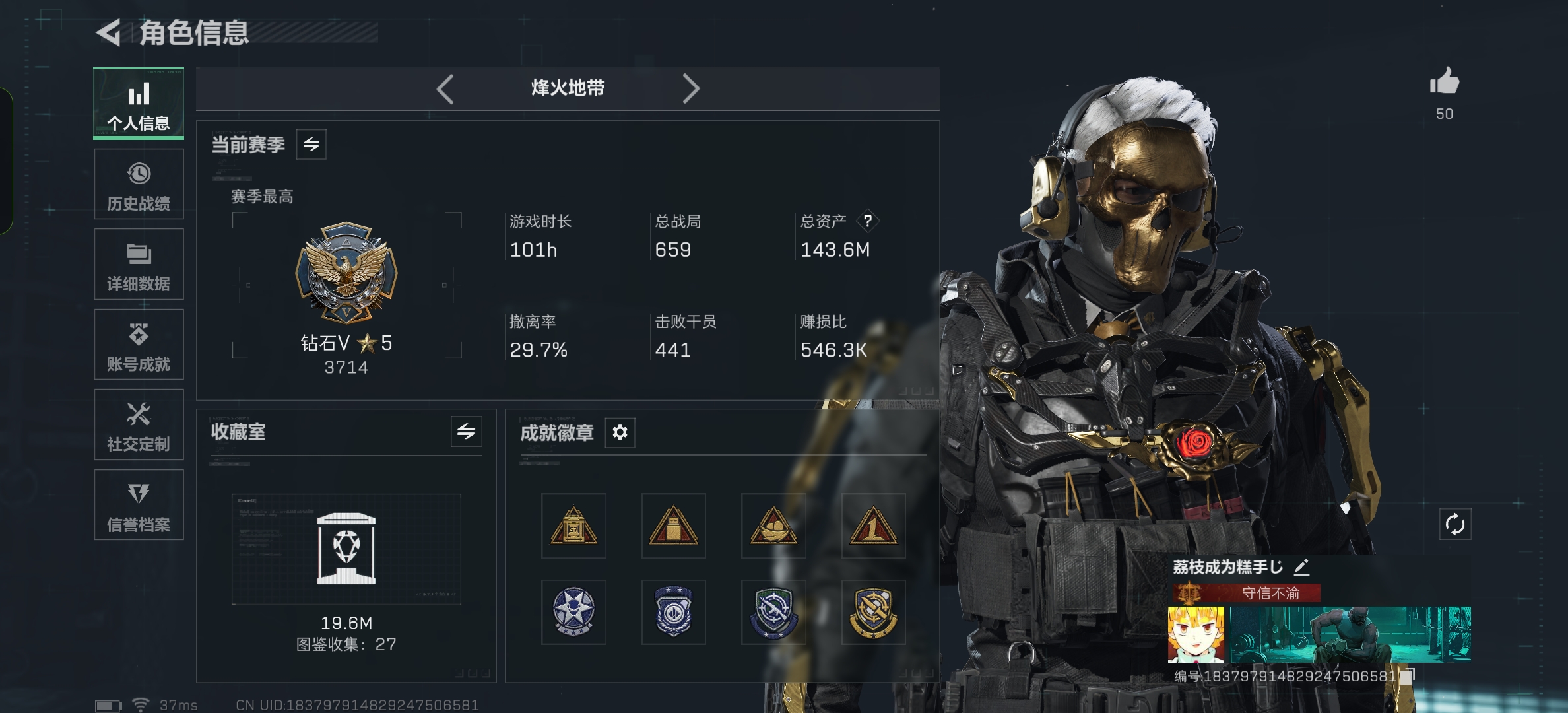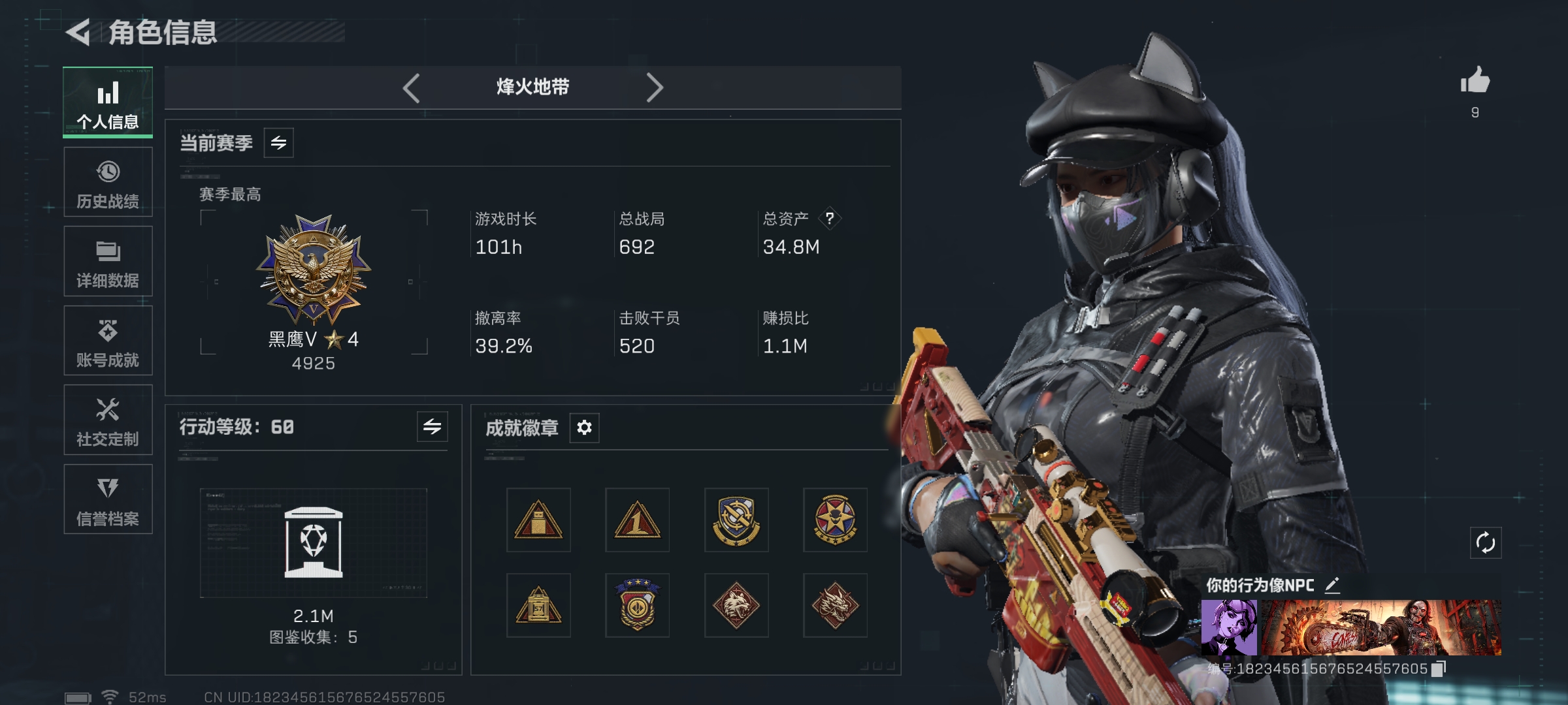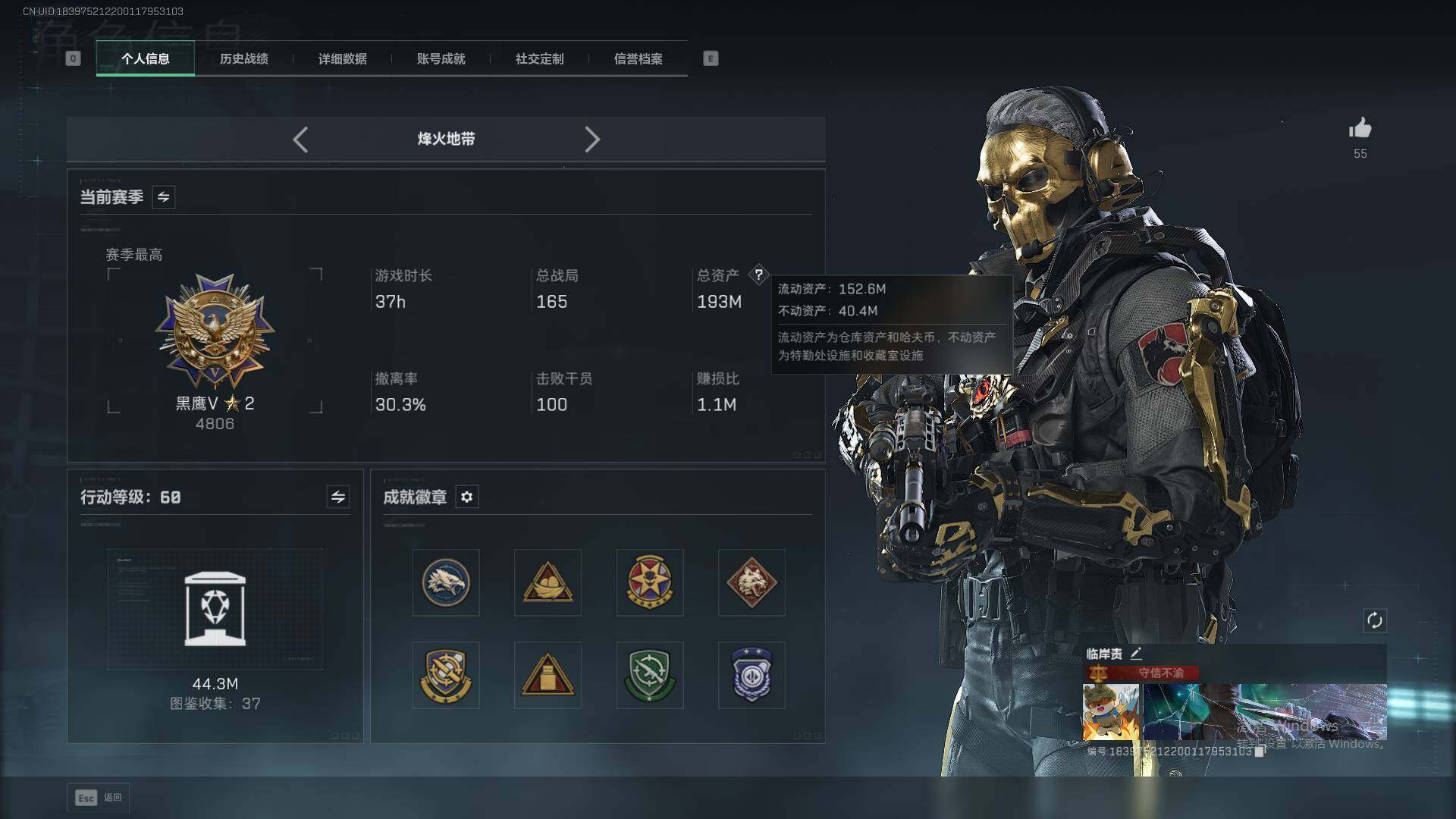 总资产(M):192M/哈夫币(K):9235K/哈夫币(K):9235K/全面战场等级:27_段位