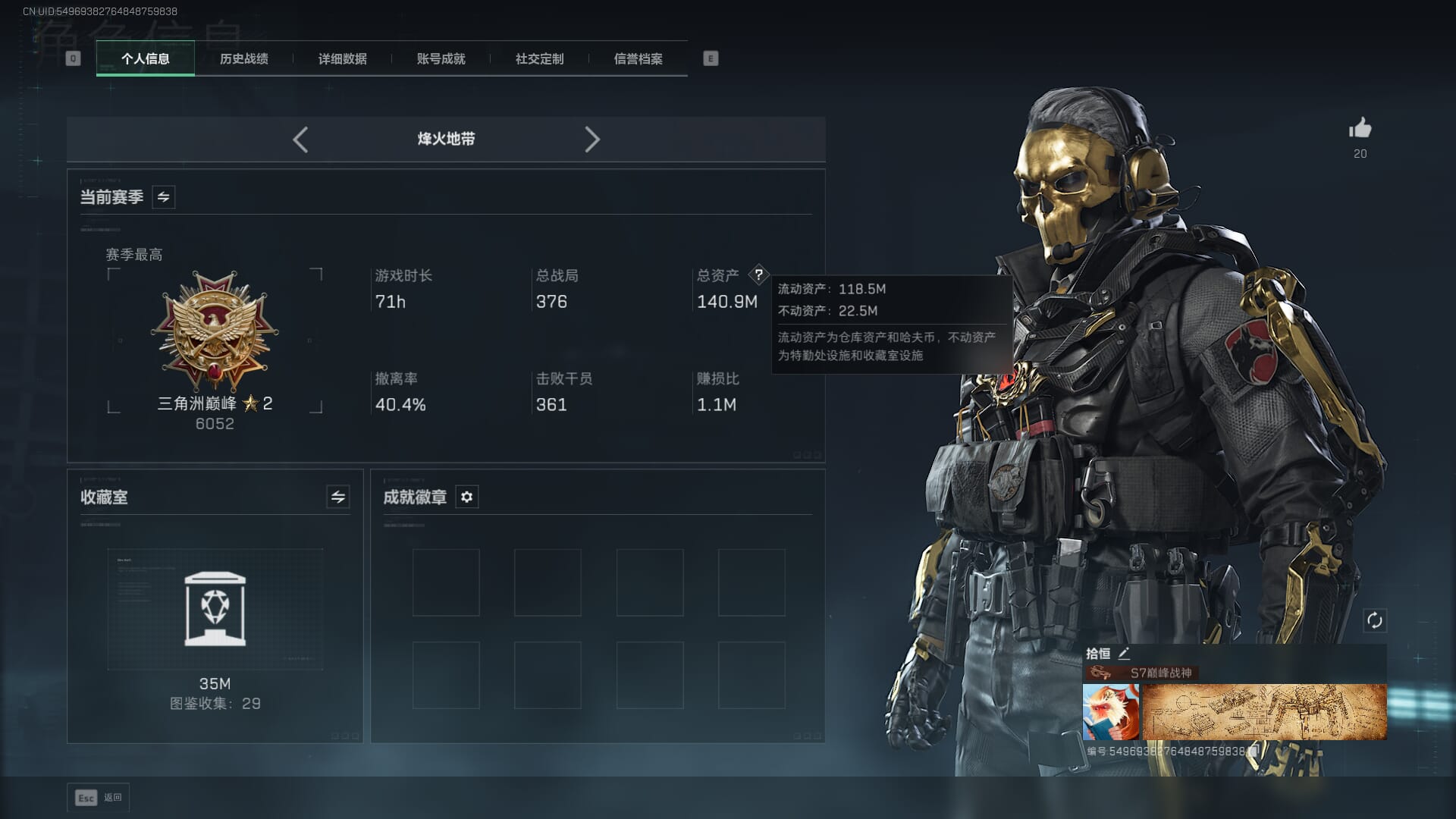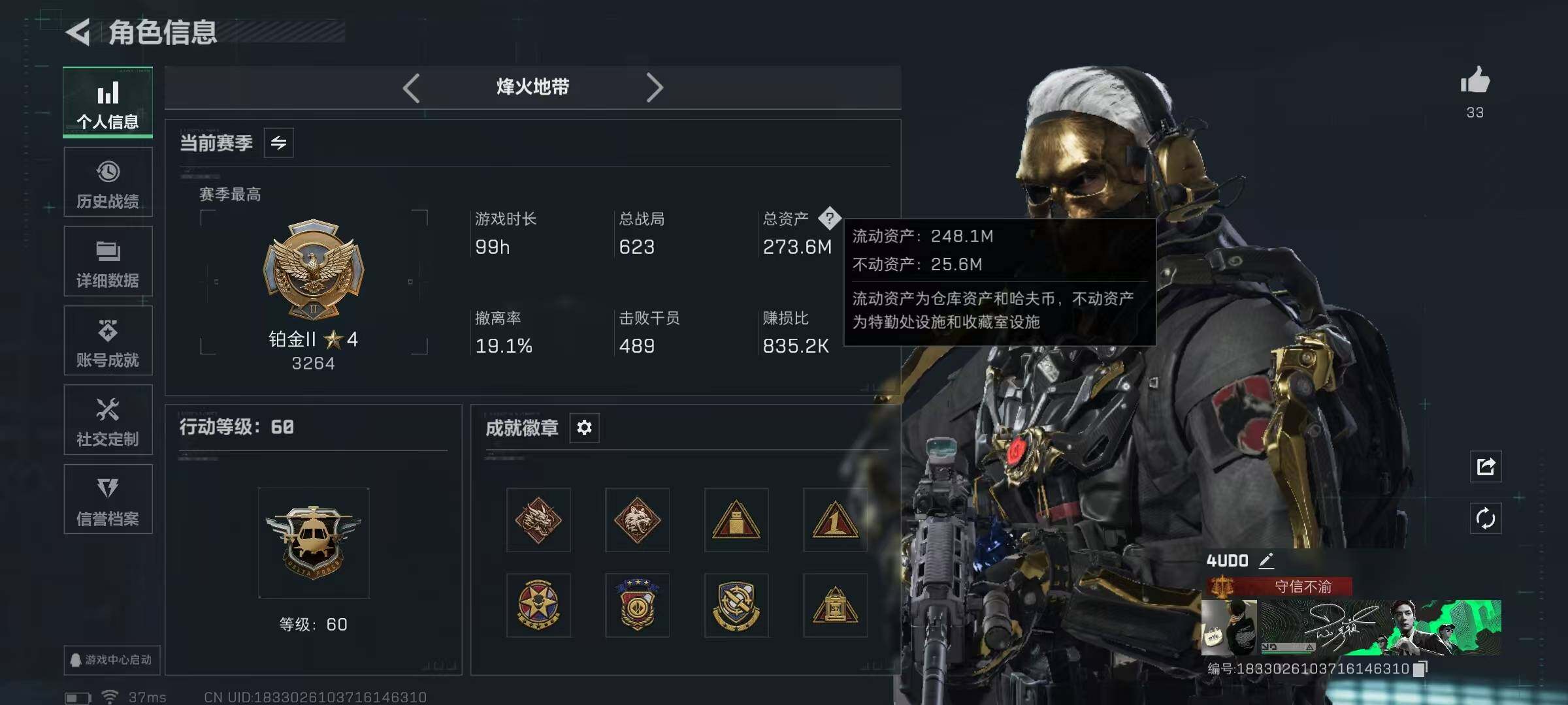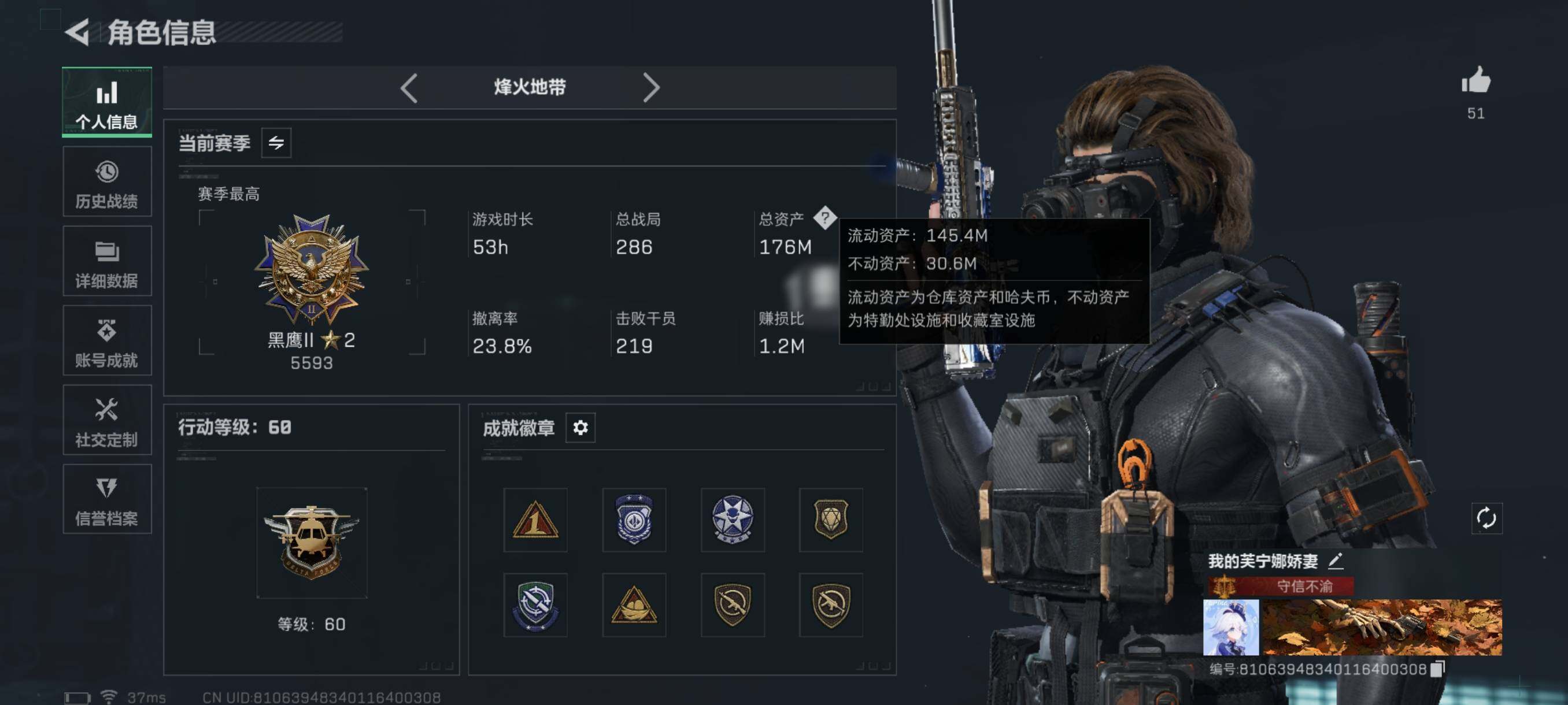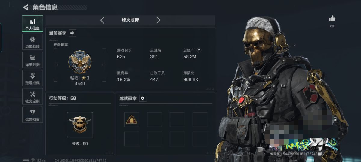 行动等级:60 总资产:25.3M 哈夫币:195.6W