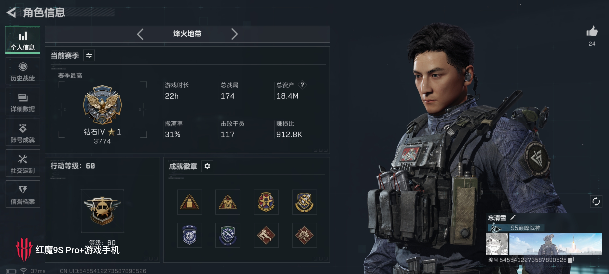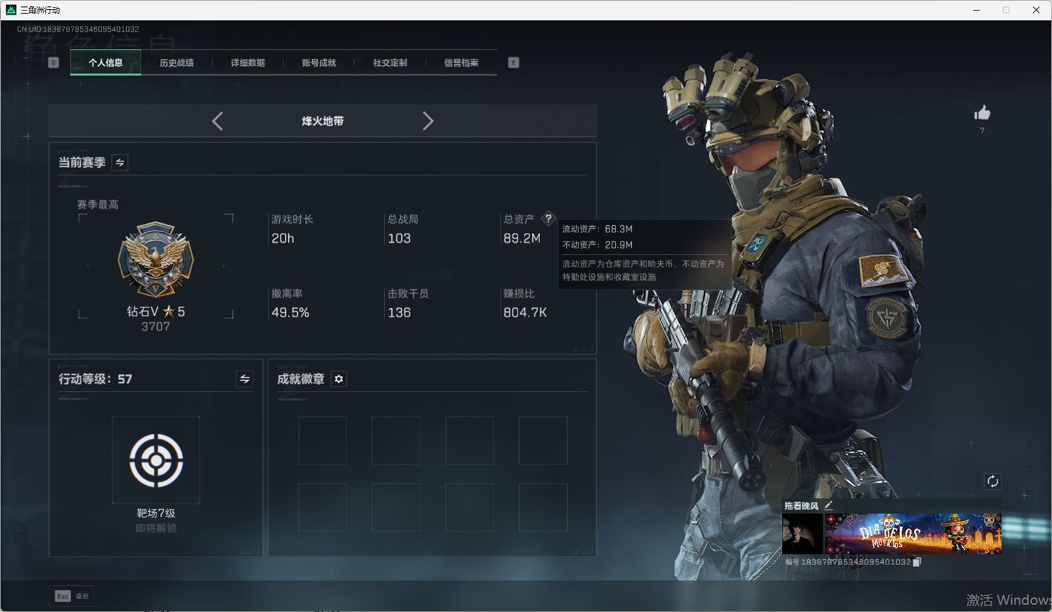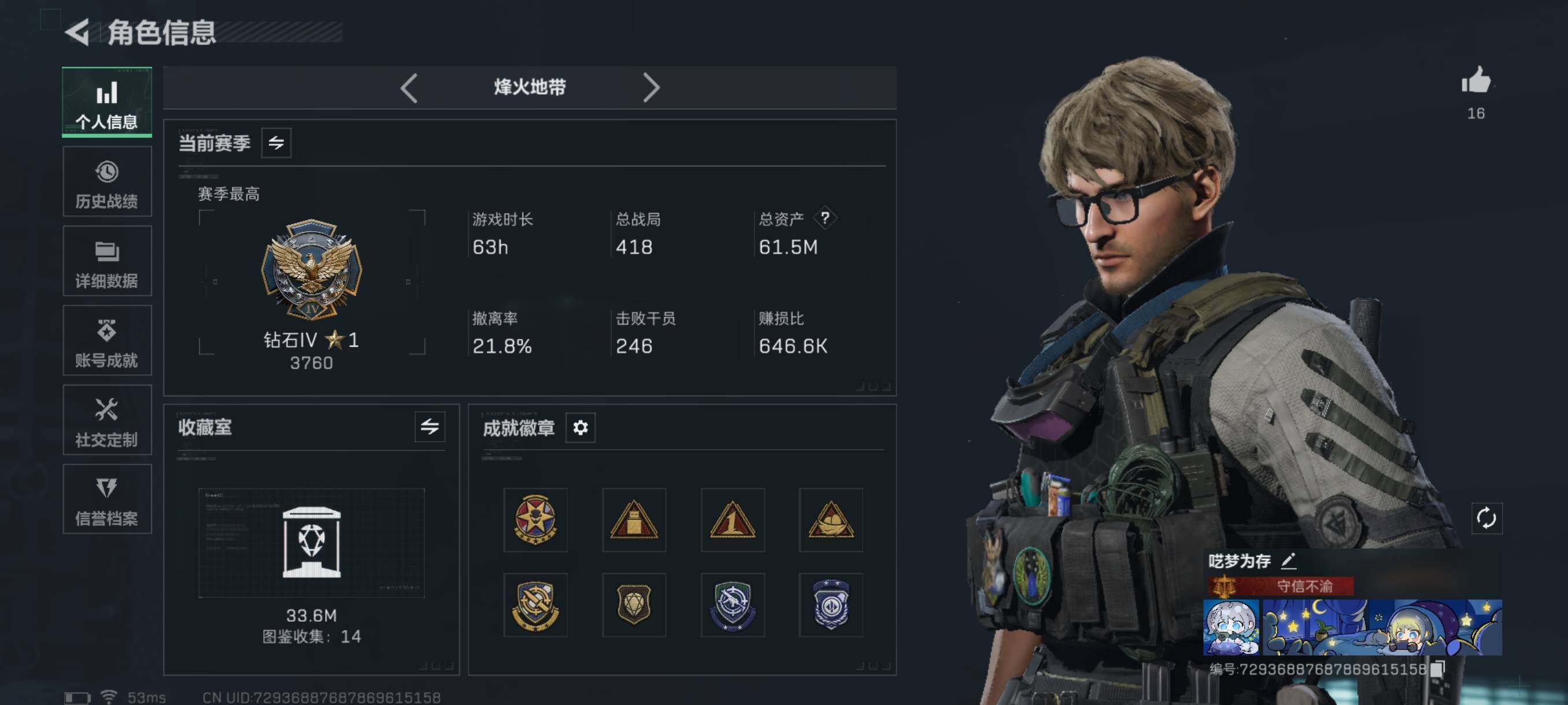 行动等级:60 总资产:25.3M 哈夫币:195.6W