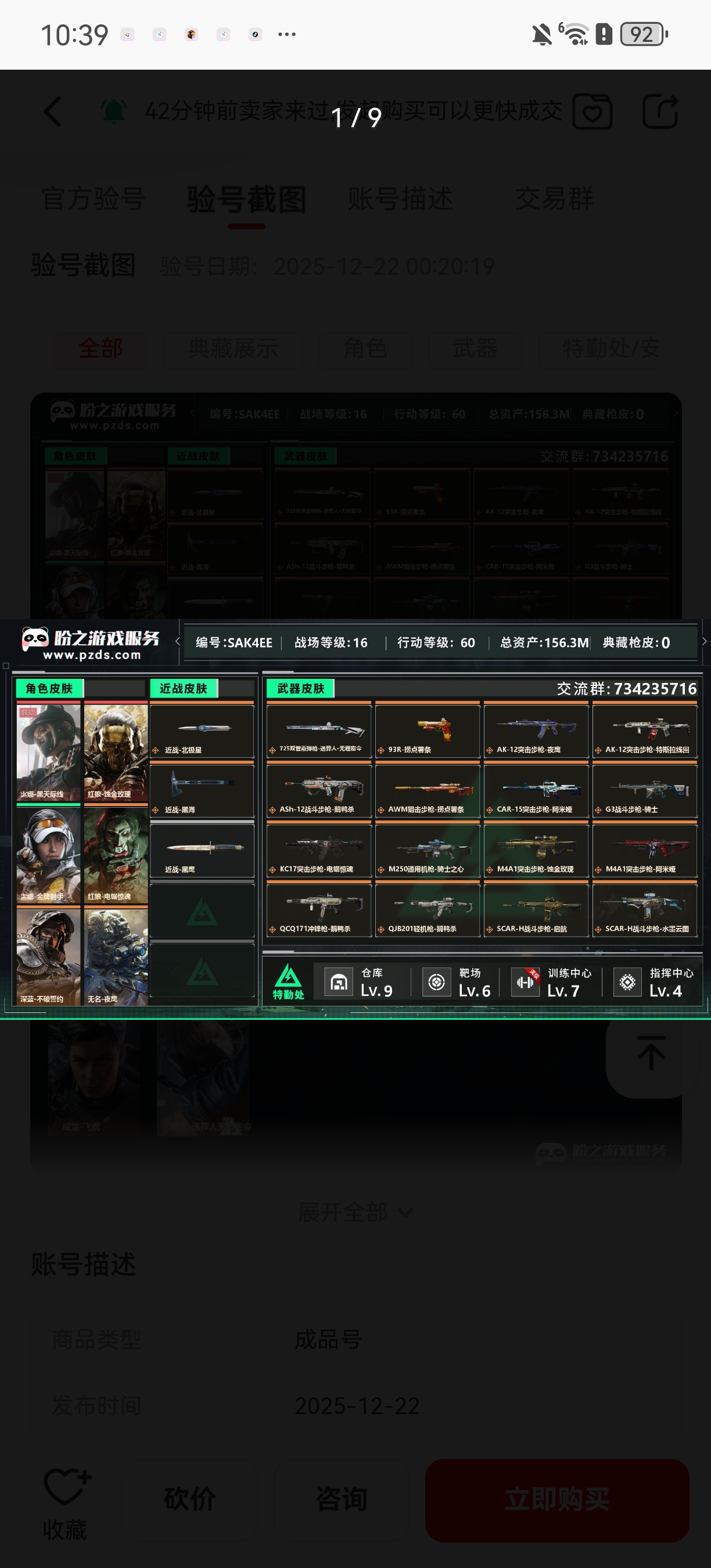 D10767/QQ区/可二次/钱包注销/总资产:181M,哈夫币:1138W,武器皮肤108;烽火6