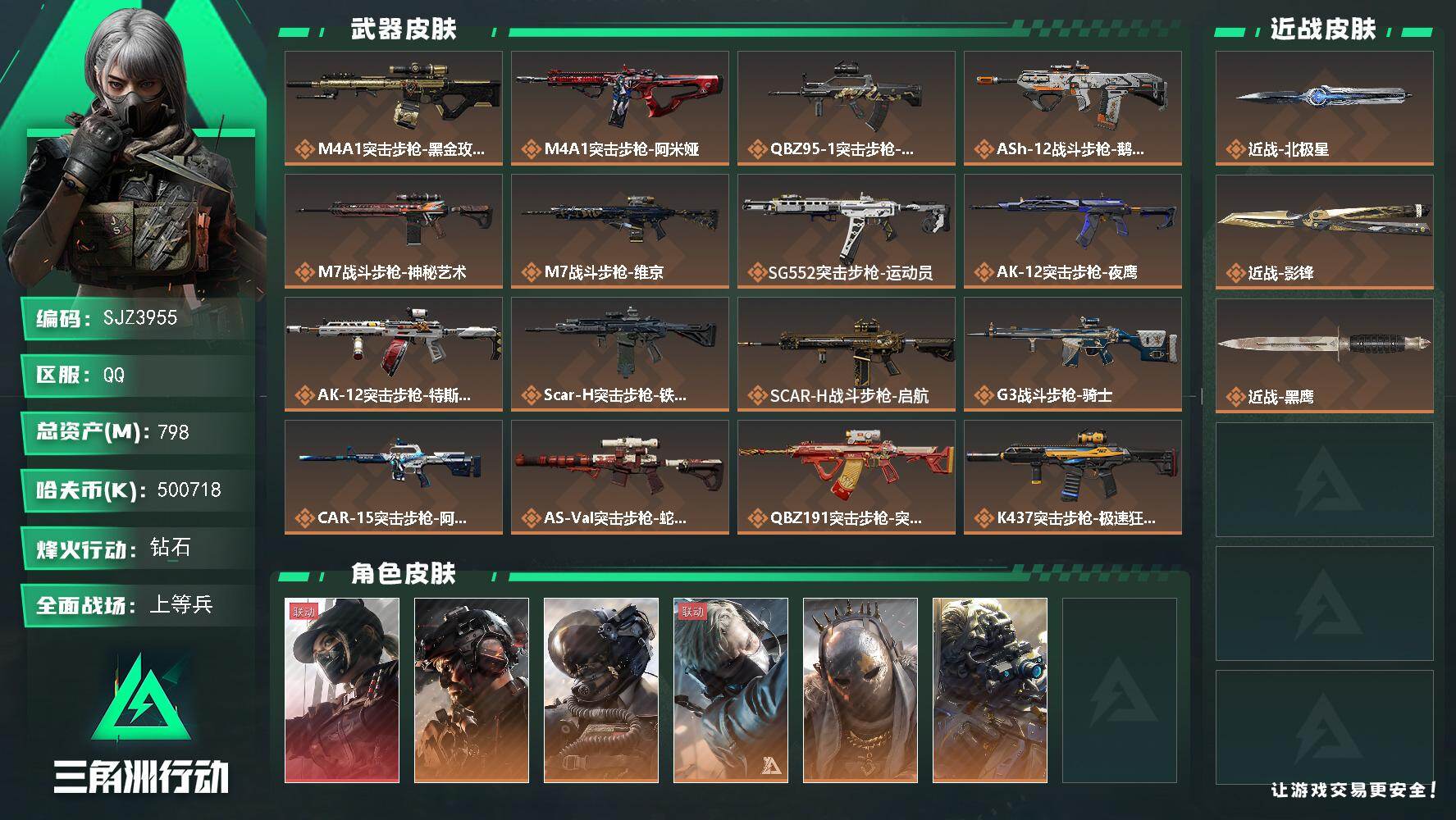 总资产(M):798M/哈夫币(K):500718K/传说枪皮数:35/全面战场等级:50_段位:上等兵/烽火地带等级:60_段位:钻石