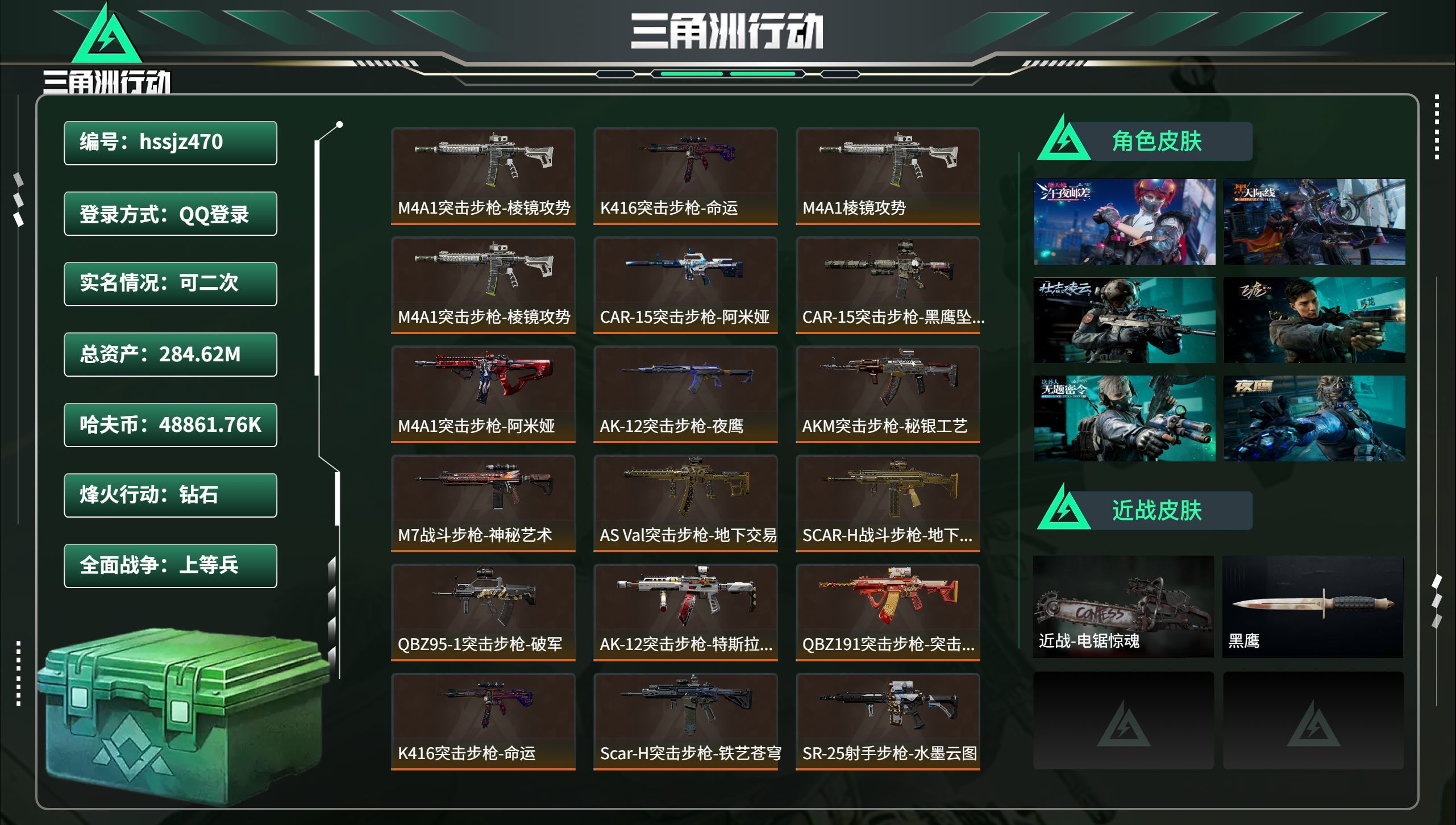 hssjz470 总资产284.62M,哈夫币 48861.76K,战场等级:26 上等兵,行动等级