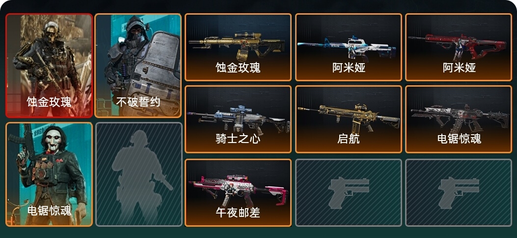维什戴尔,蚀金玫瑰,电锯惊魂,北极星,天际线差一抽,有天才少年,25发AW子弹,4套六套