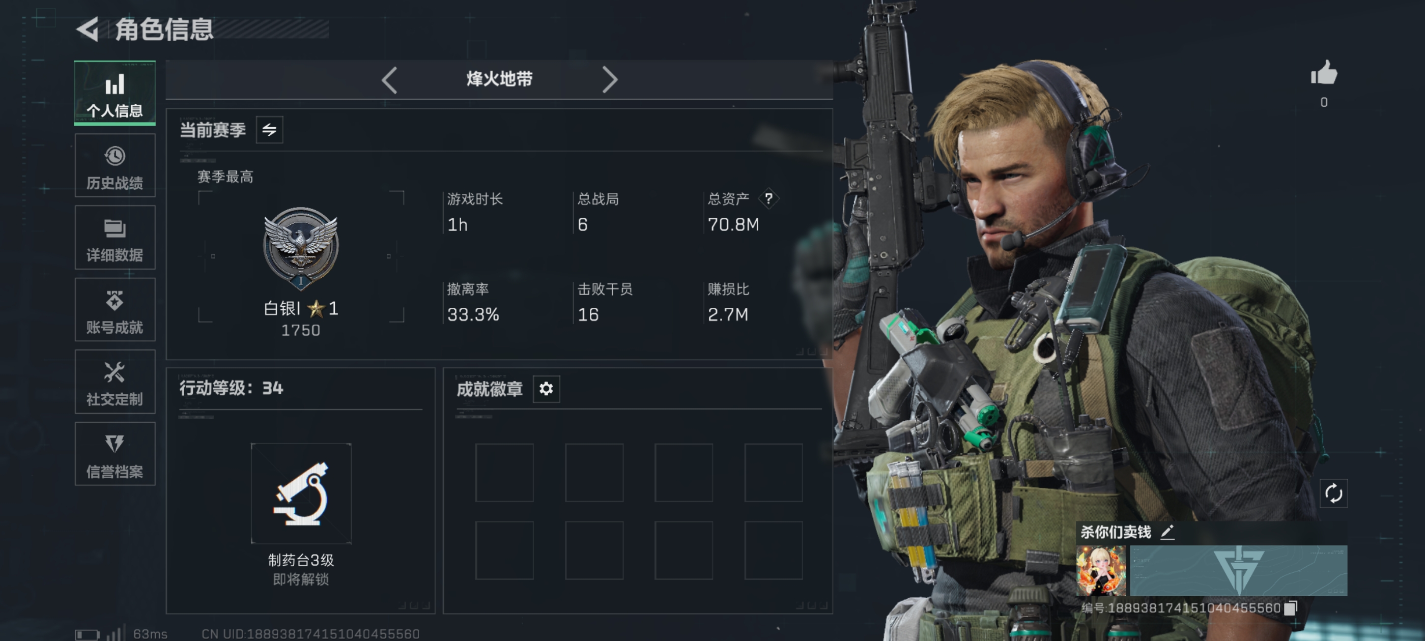 行动等级:60级 总资产:238M 流动资产:141.8M 哈夫币:311W