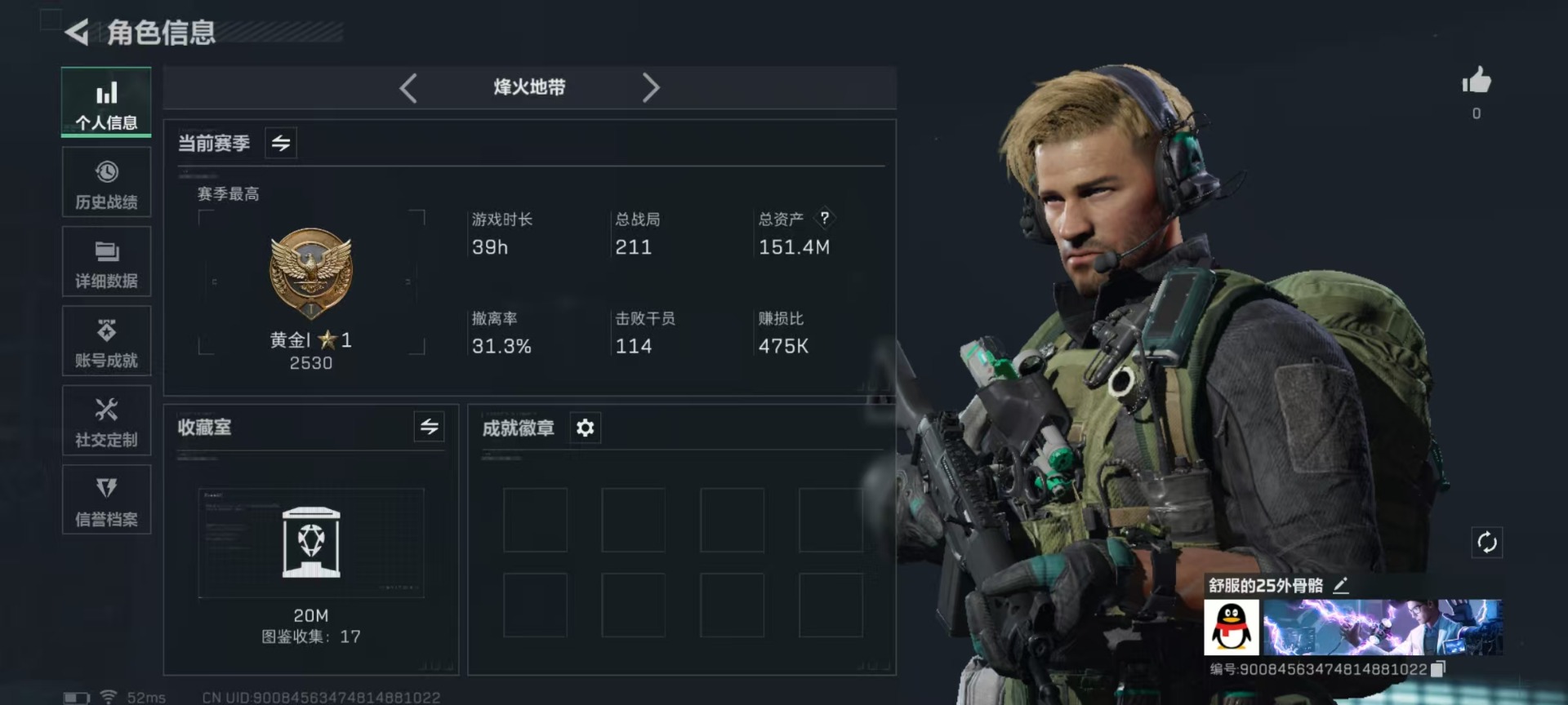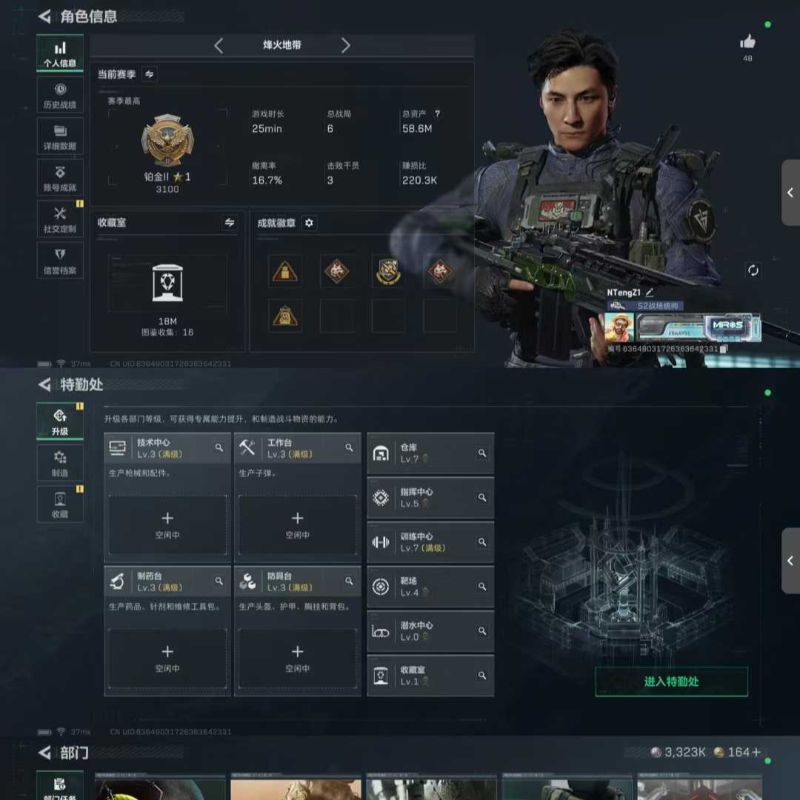 总资产:180M 1干员外观 17传说枪械 哈夫币:408.585K 可二次 可修改实名