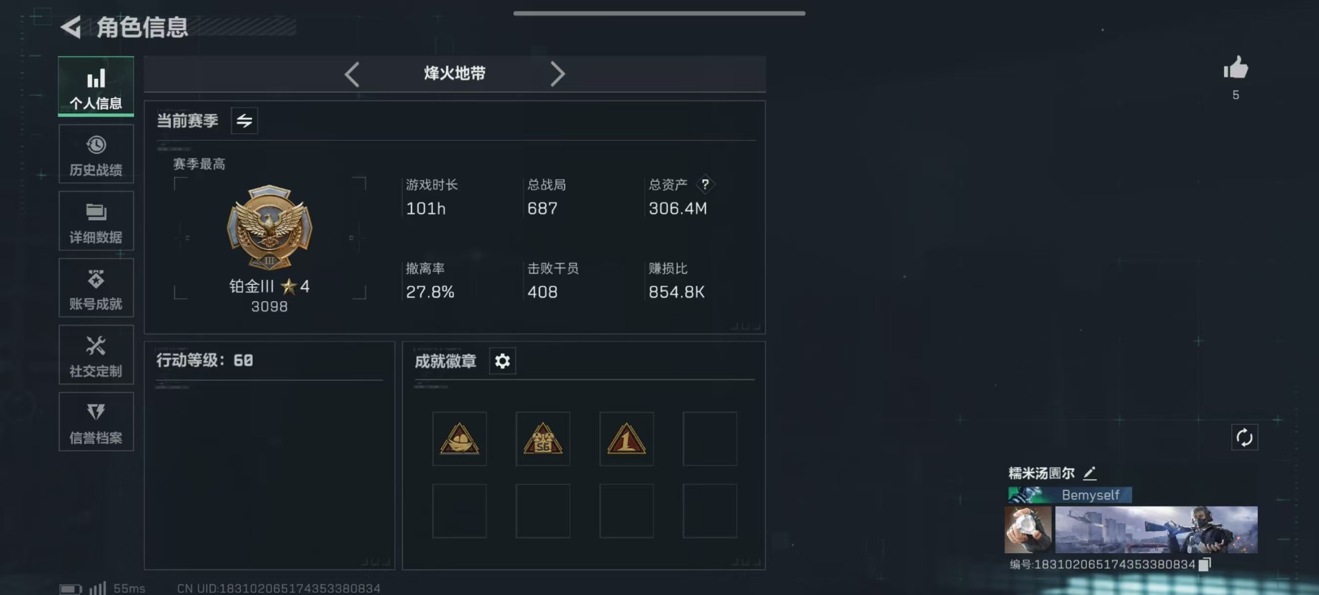 黑海-197k哈伏币-23m流动资产-60烽火等级-钻石-50战场等级-上等兵
