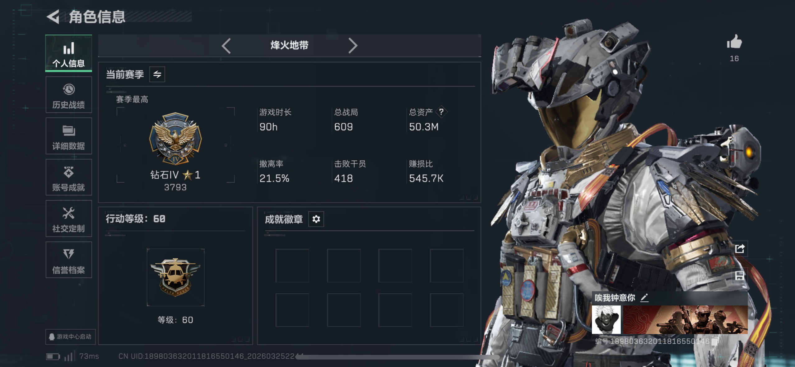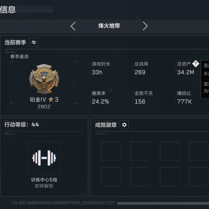 505m总资产-302198k哈夫币-60烽火等级-钻石-3战场等级-无军衔