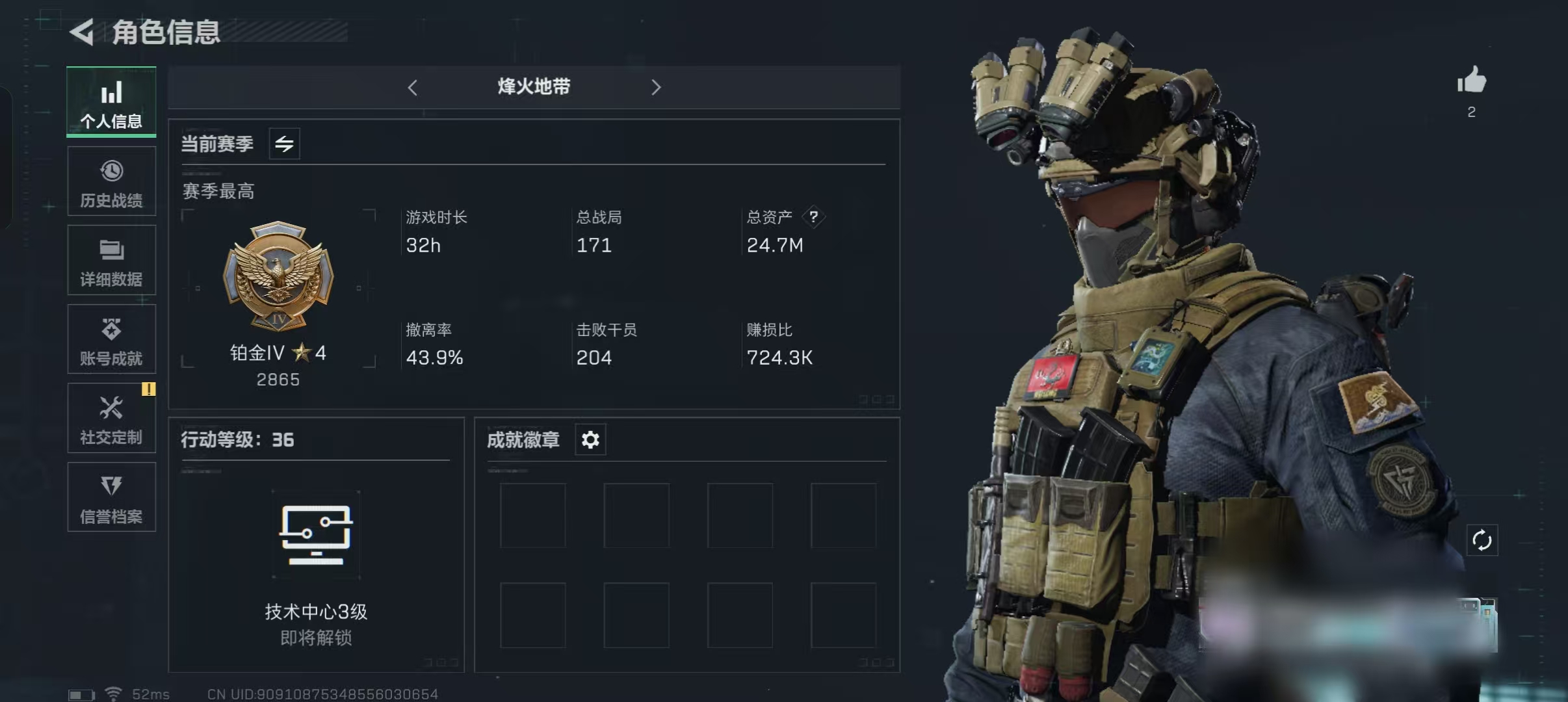 三端互通-Q区-总资产61.6M-哈夫币2752-烽火地带等级60-