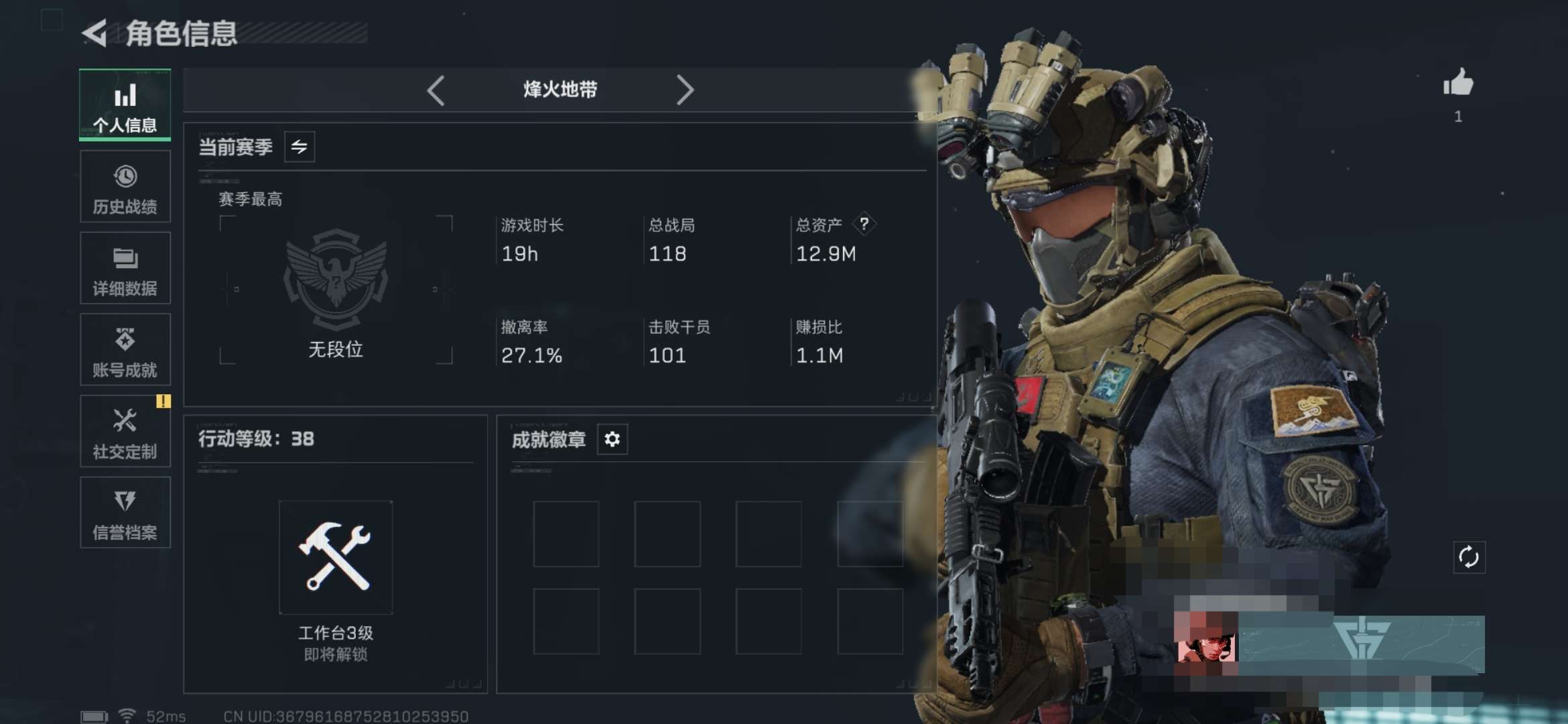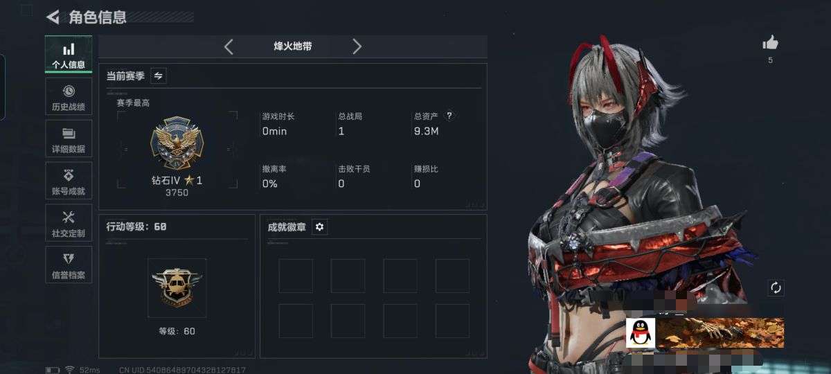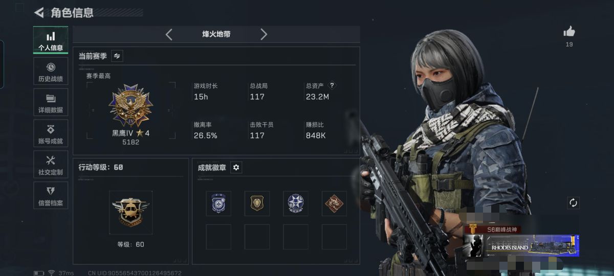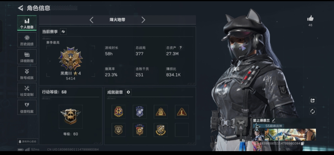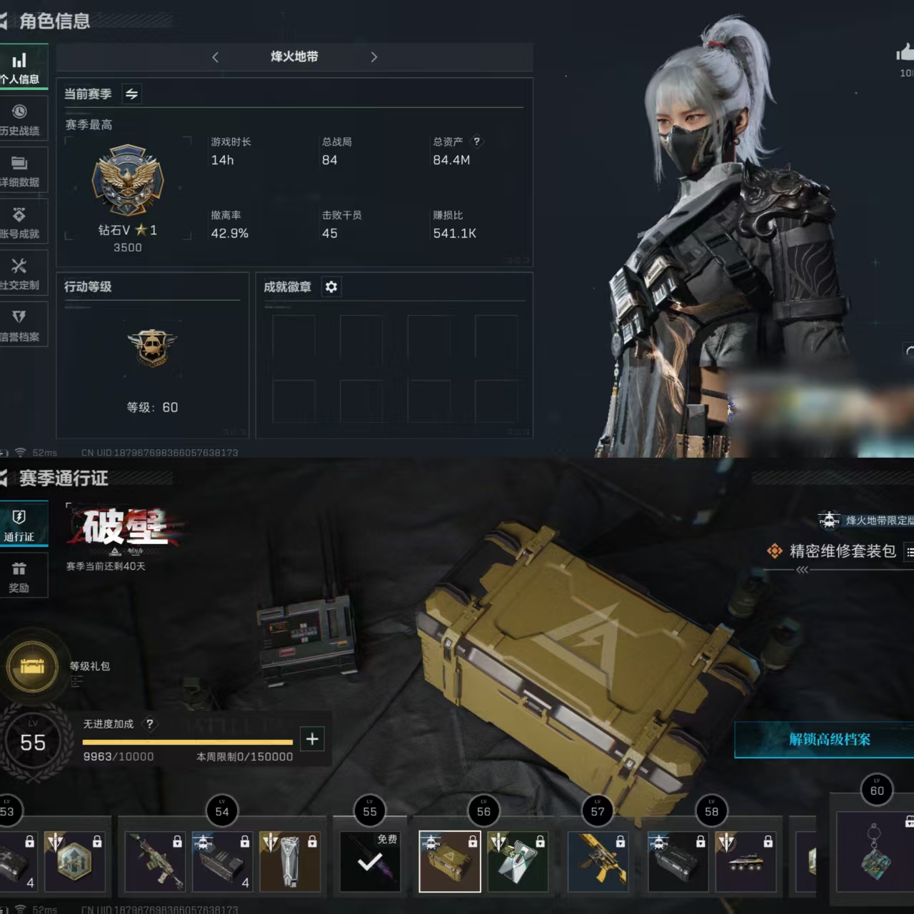 等级60级 仓库价值84M 哈夫币57350K 干员皮肤1 水墨云图