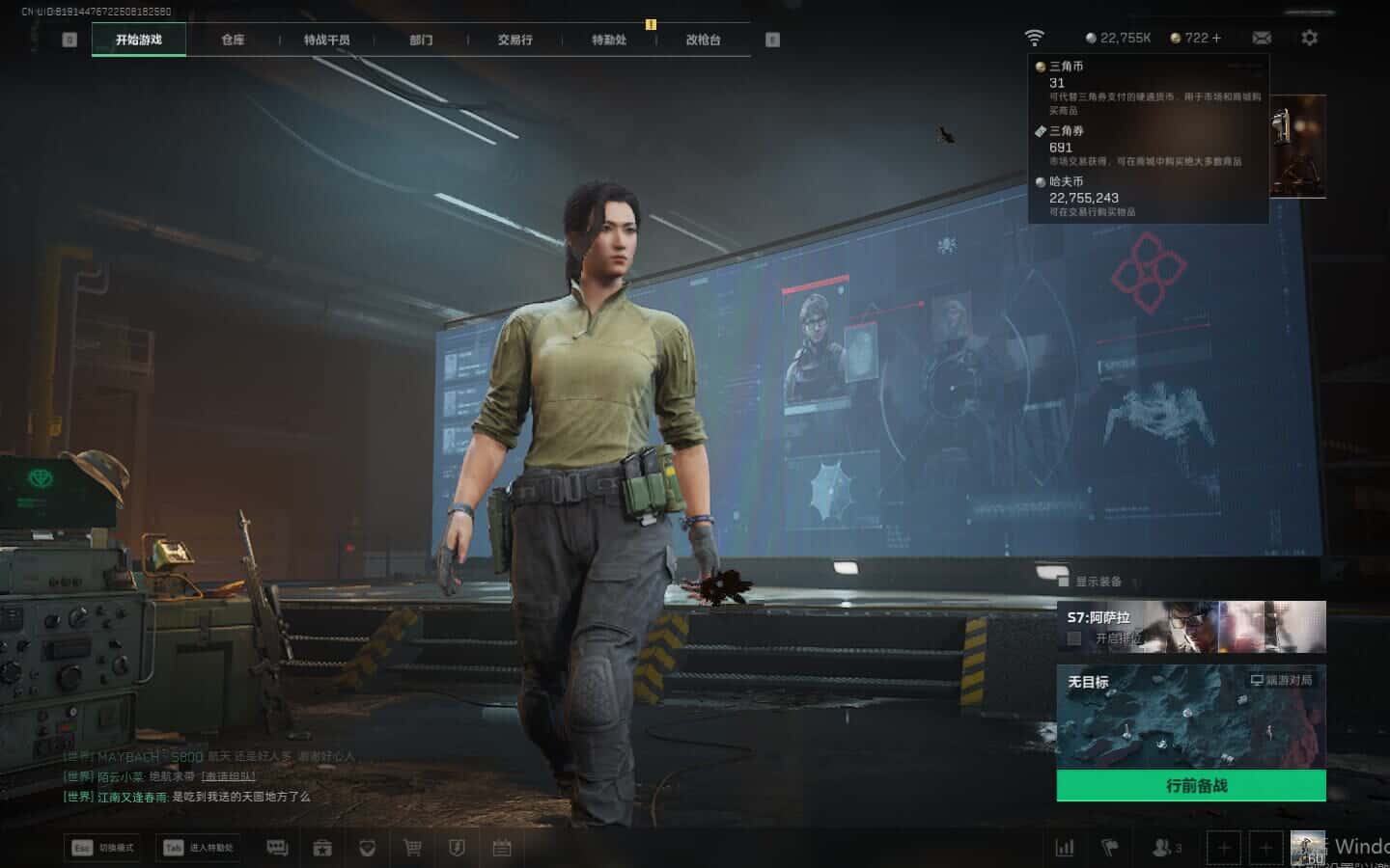 总资产(M):26M/哈夫币(K):591K/全面战场等级:6_段位:列兵/烽火地带等级:60_段位:黑鹰/
