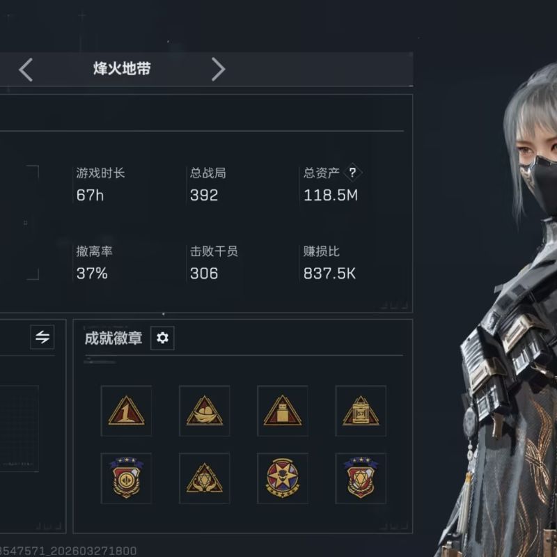 11m总资产-4089k哈夫币-9烽火等级-青铜-6战场等级-列