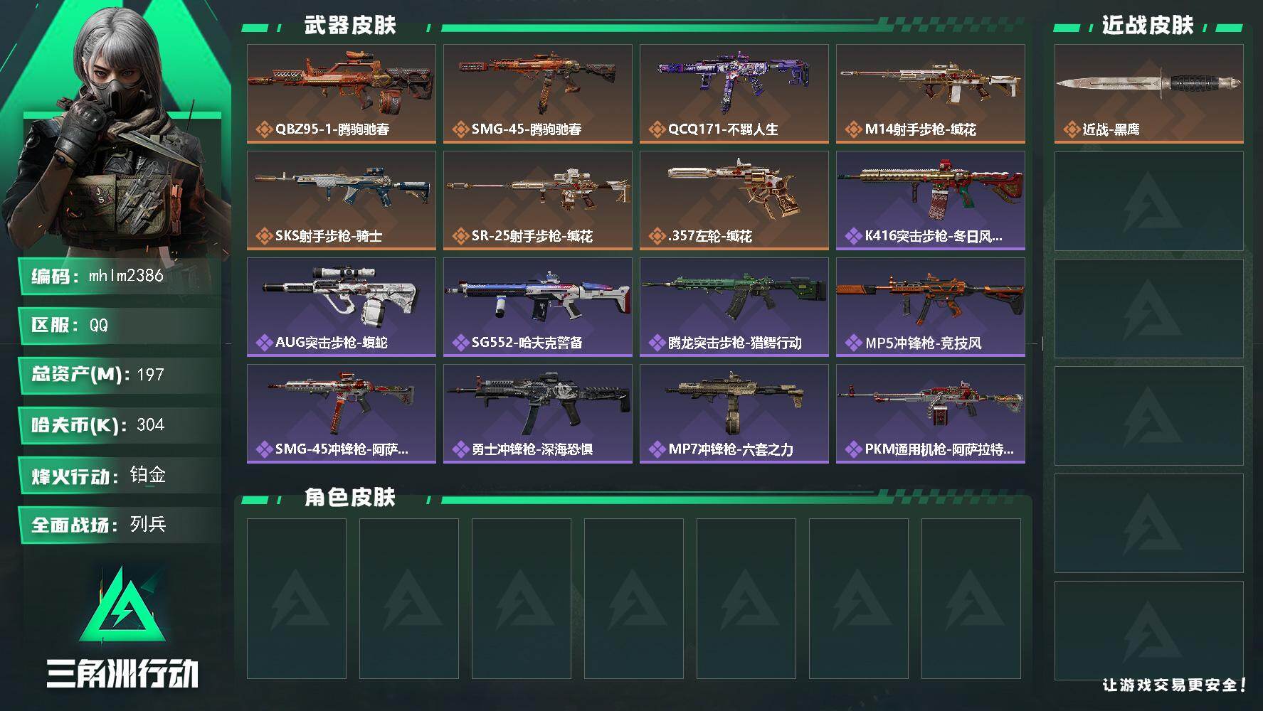 【mhlm2386】197m总资产-304k哈夫币-60烽火等级-铂金-16战