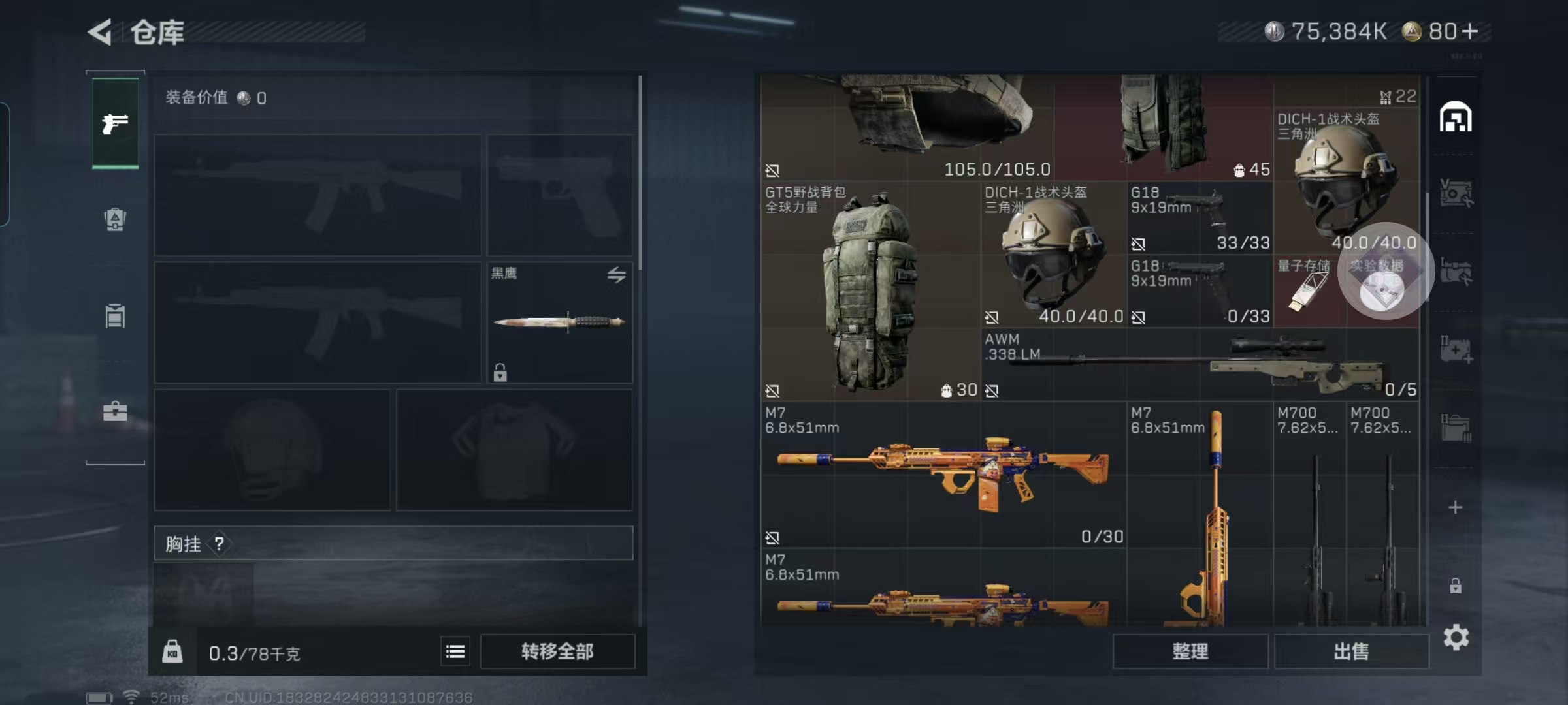 三角洲行动账号出售,总资产290M+ 有蚀金玫瑰、天际线等皮肤加北极星刀皮。特勤处满