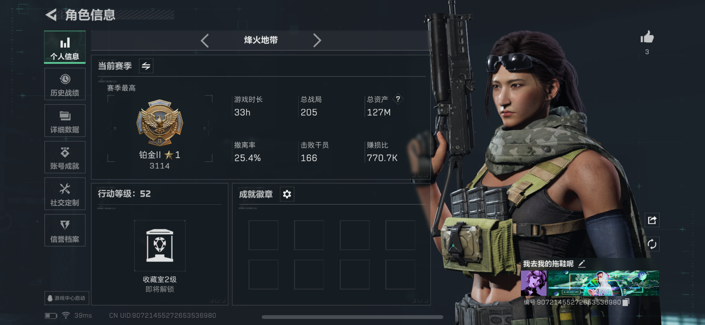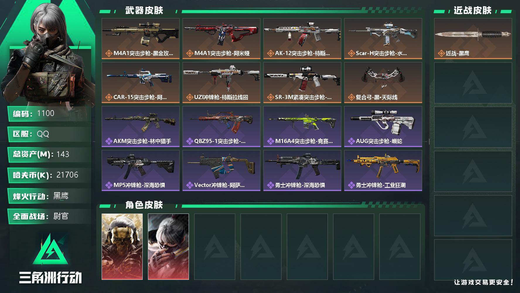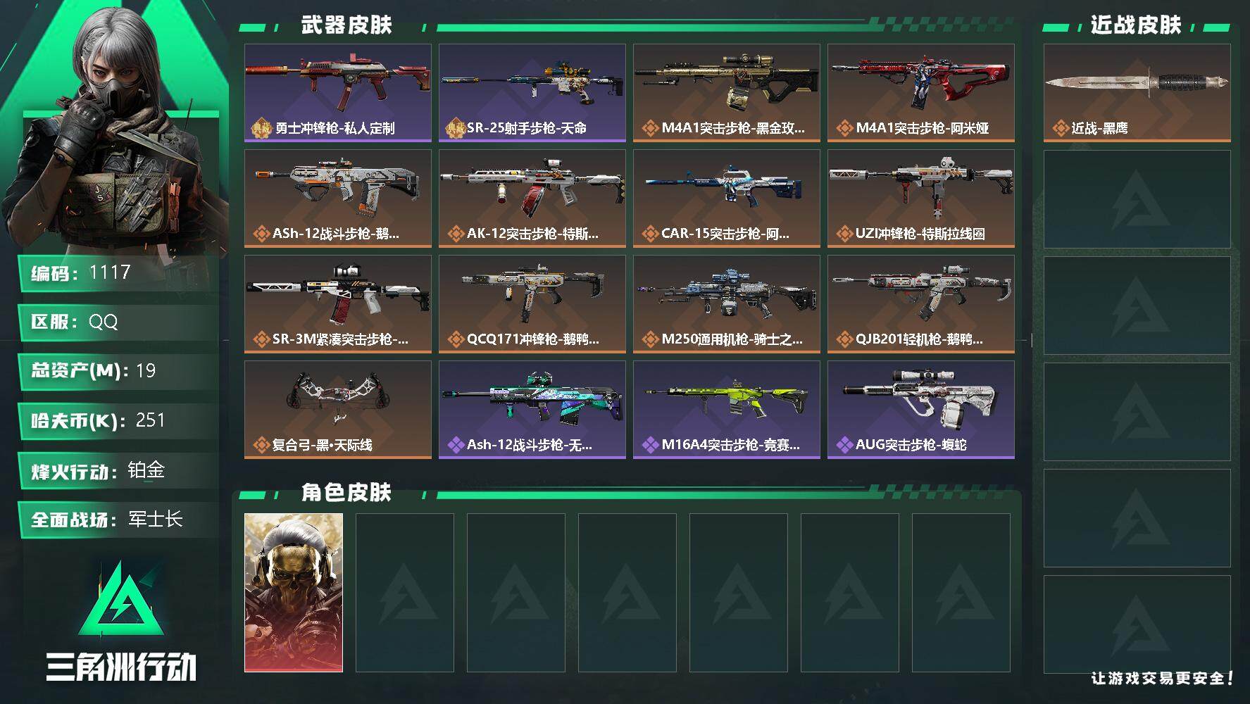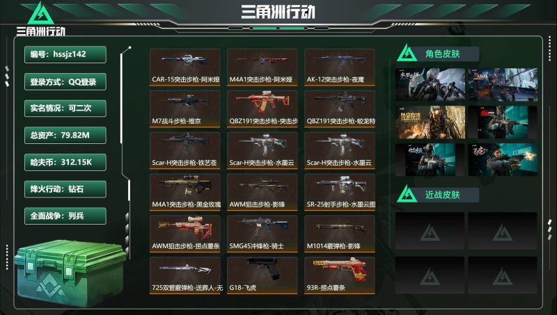 【1182】总资产:174.2M,哈夫币:6284W,武器皮肤39,烽火60级