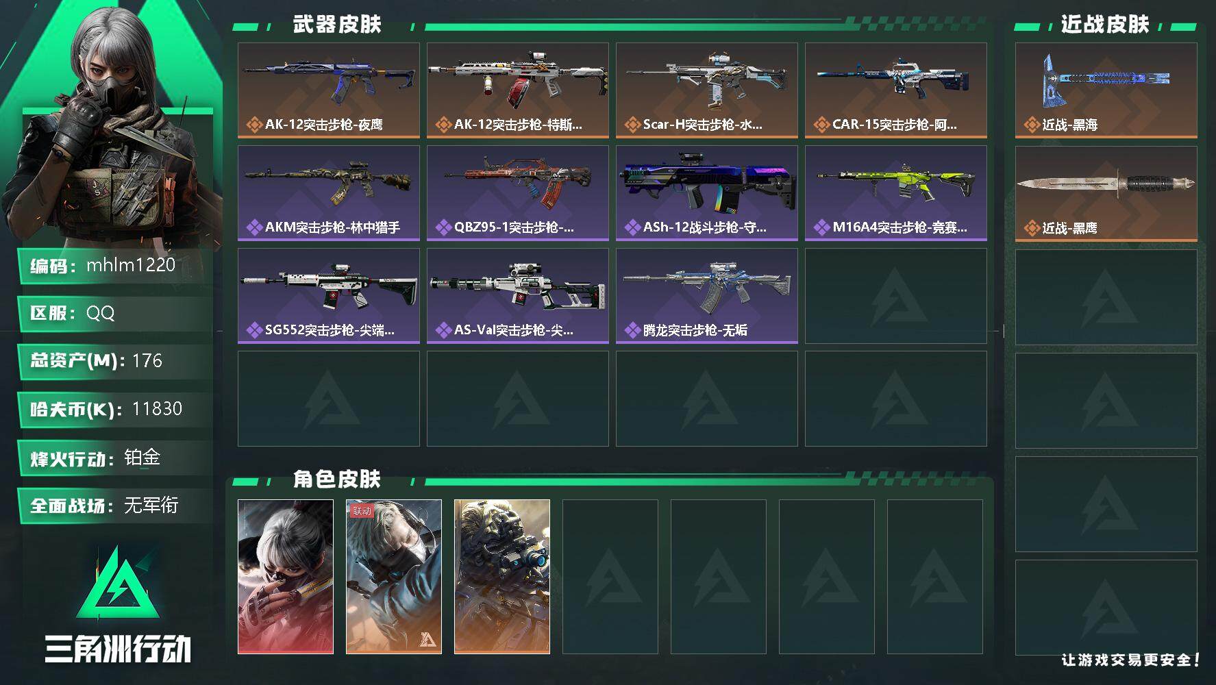 【mhlm1220】总资产:175.5M,哈夫币:1183W,武器皮肤123,