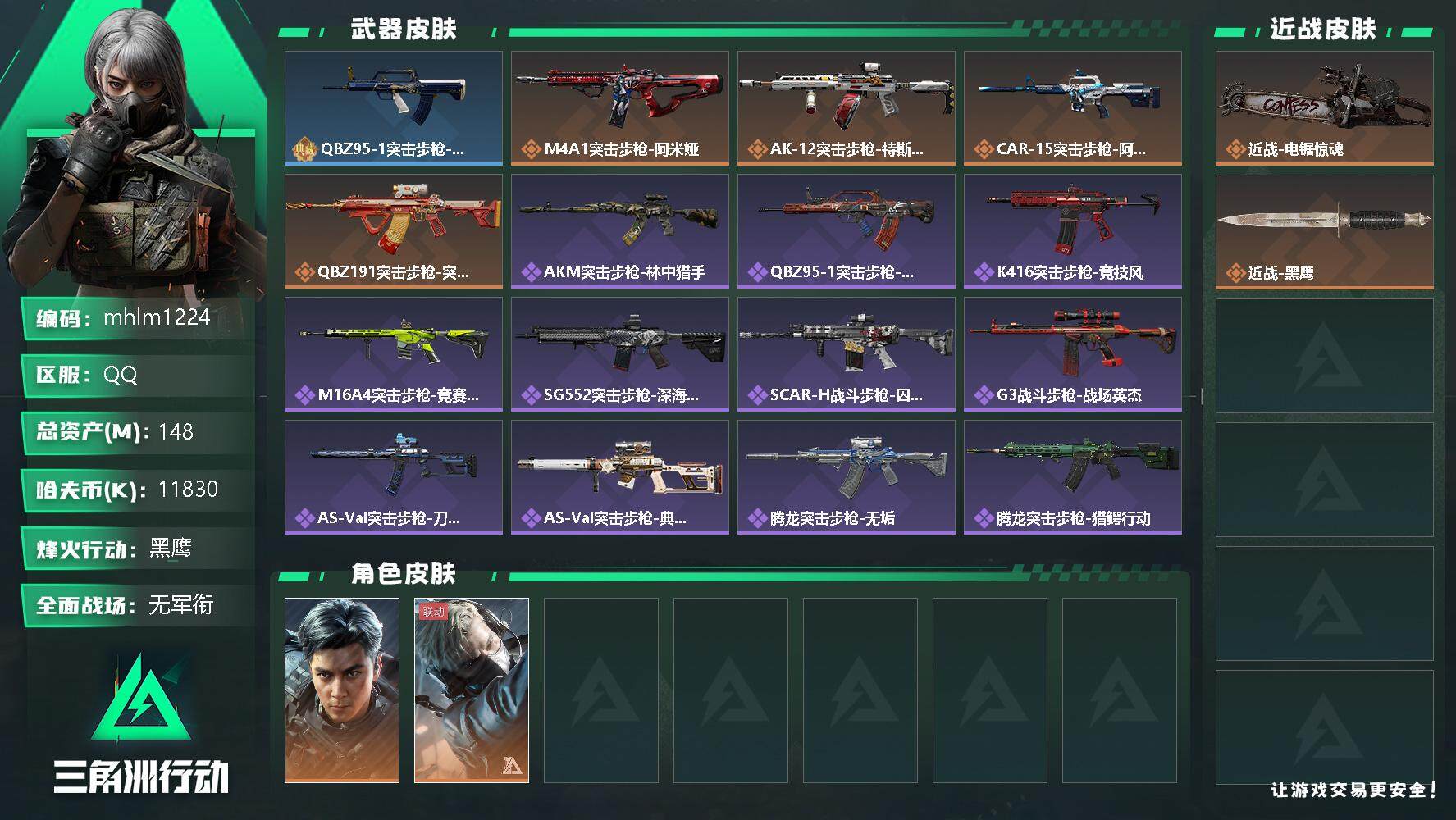 【mhlm1224】总资产:148.2M,哈夫币:1183W,武器皮肤194,