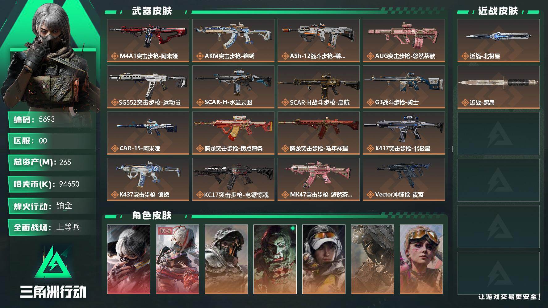 265m总资产-94650k哈夫币-60烽火等级-铂金-36战场等级-上等兵