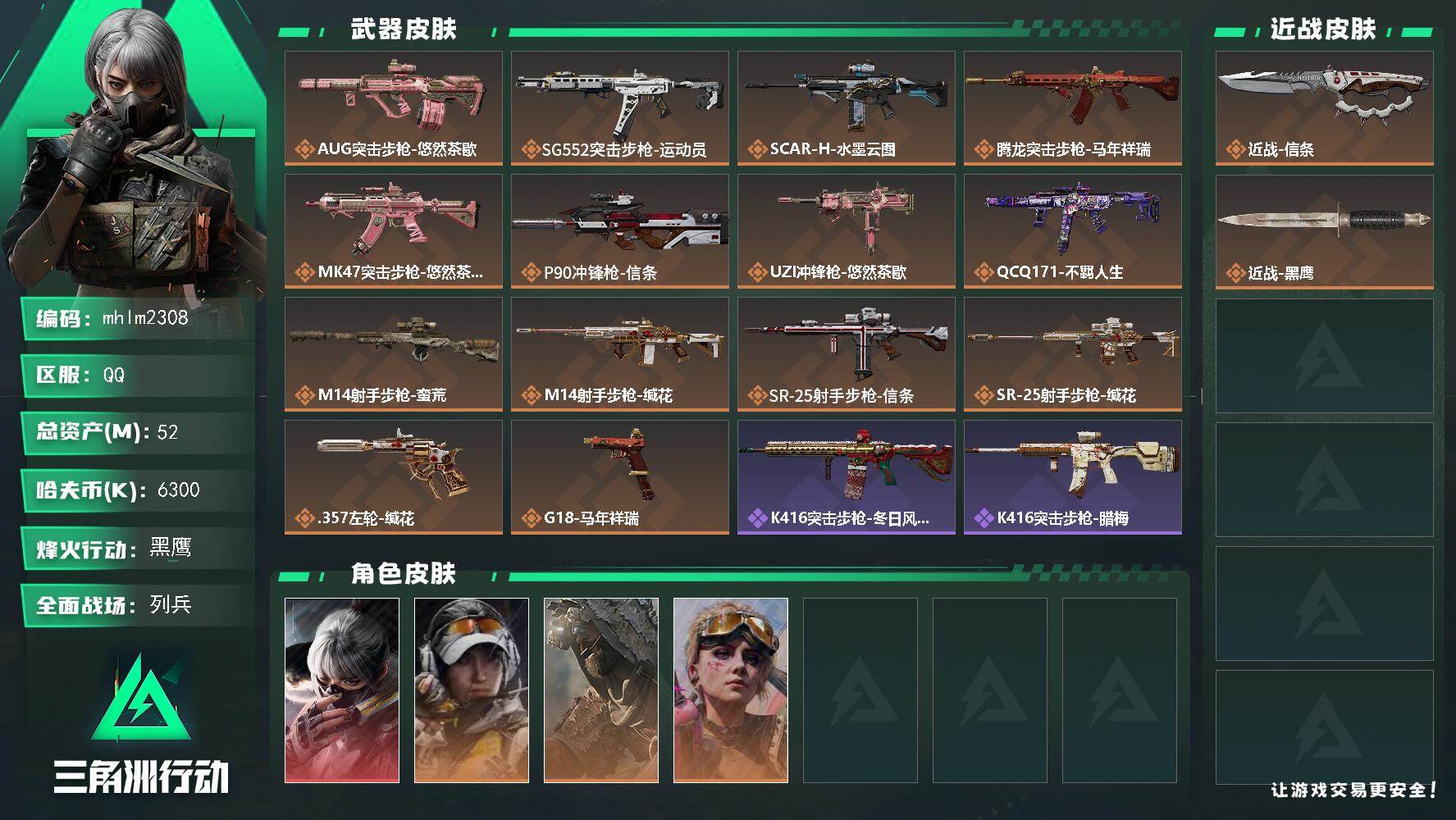 52m总资产-6300k哈夫币-60烽火等级-黑鹰-10战场等级-列兵