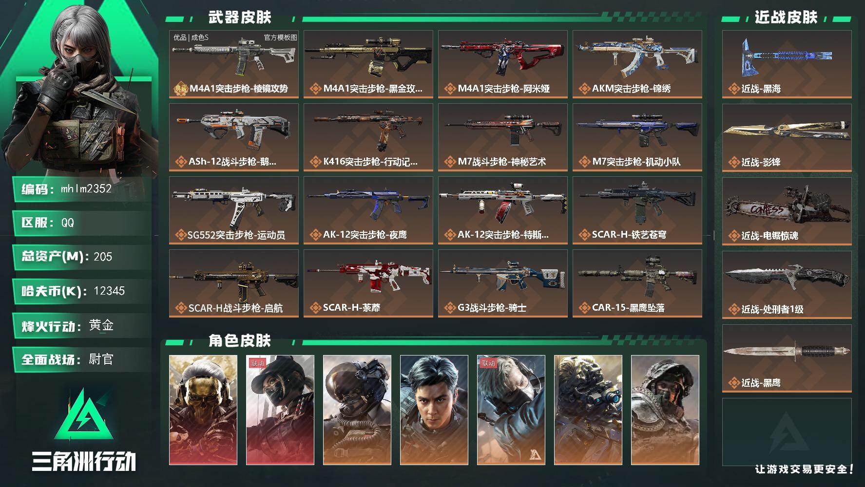 205m总资产-12345k哈夫币-60烽火等级-黄金-50战场等级-尉官【