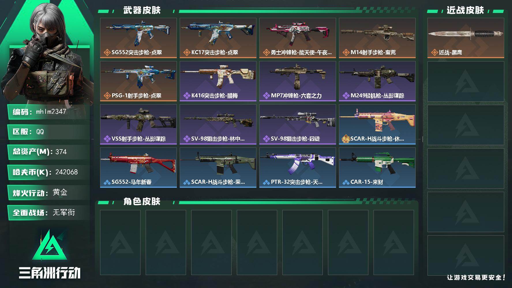 374m总资产-242068k哈夫币-46烽火等级-黄金-1战场等级-无军衔