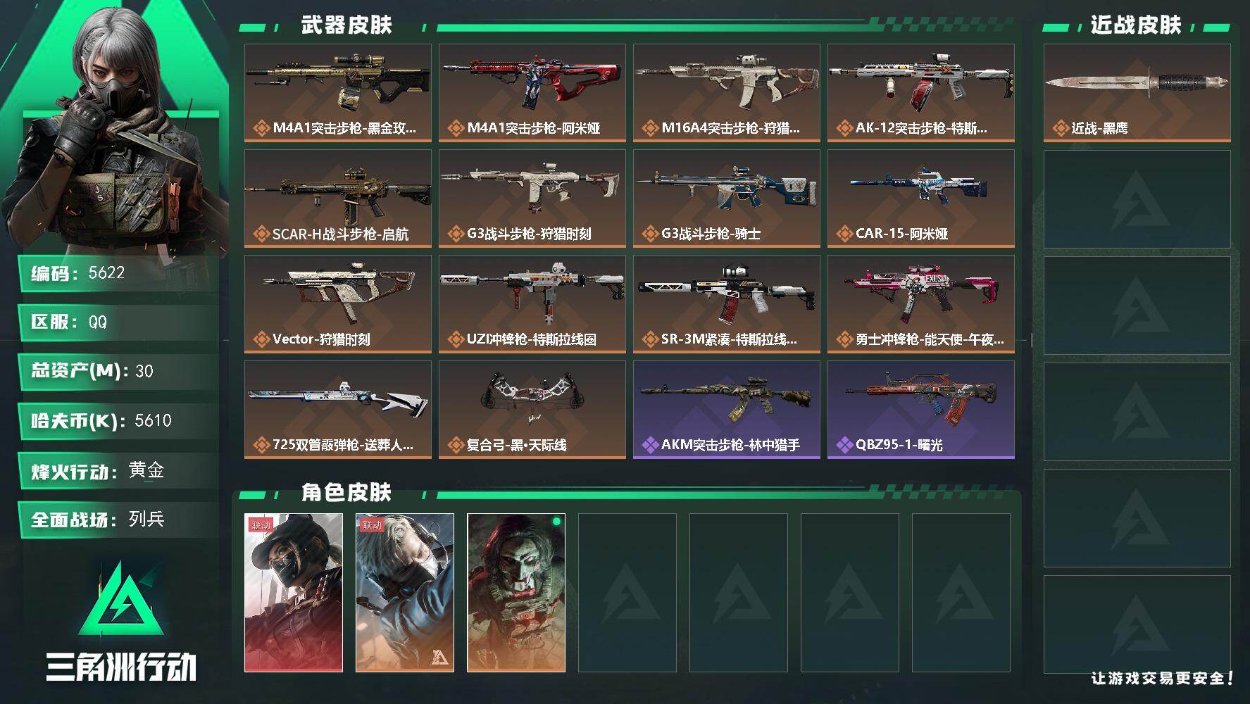 30m总资产-5610k哈夫币-60烽火等级-黄金-28战场等级-列兵