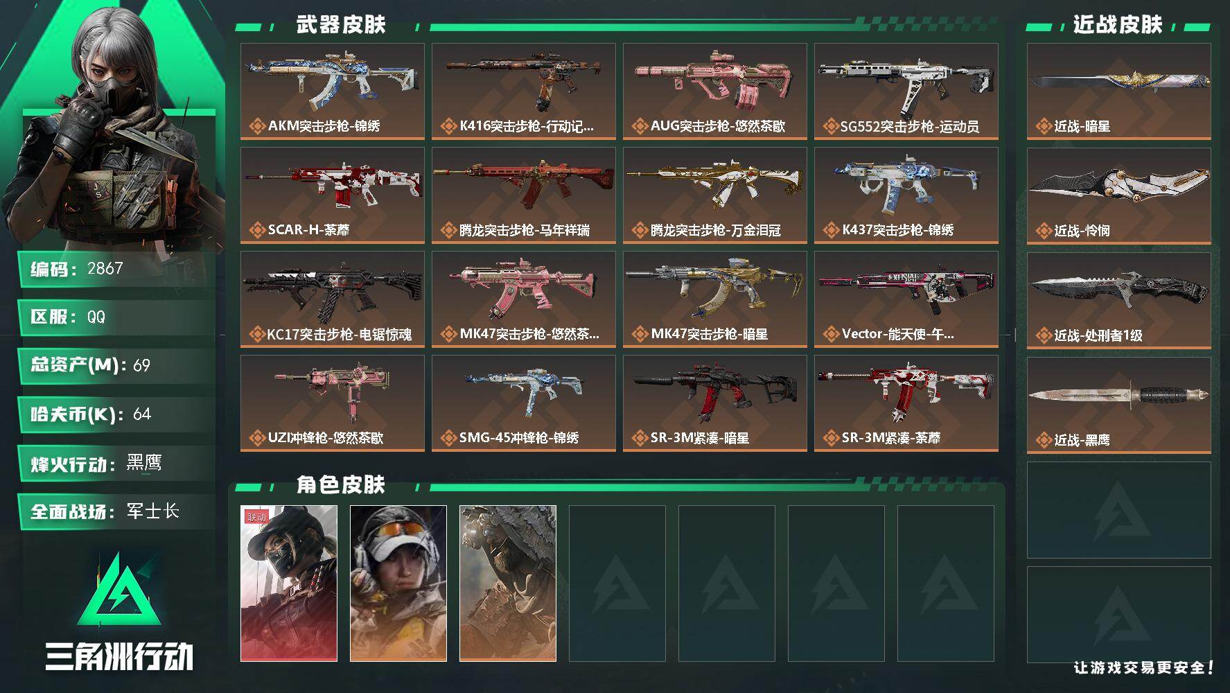 【2867】总资产(M):69M/哈夫币(K):64K/哈夫币(K):64K/