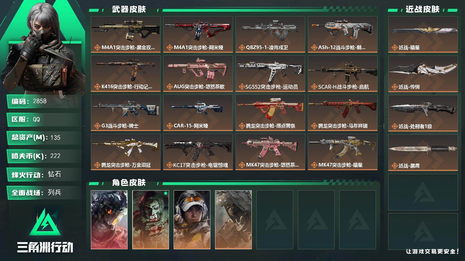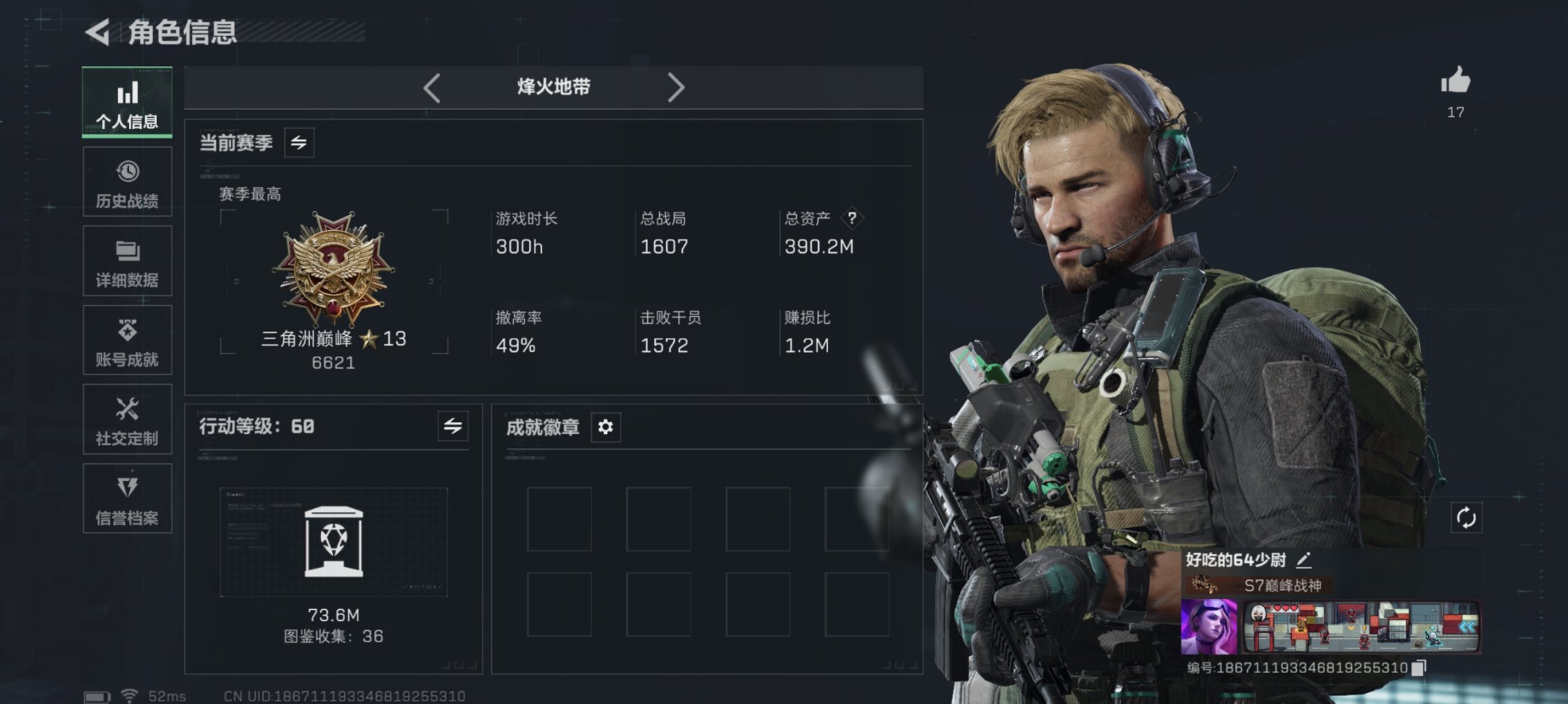 【总资产354M 72颗AW子弹 哈夫币74,349K,行动等级:60,仓库等
