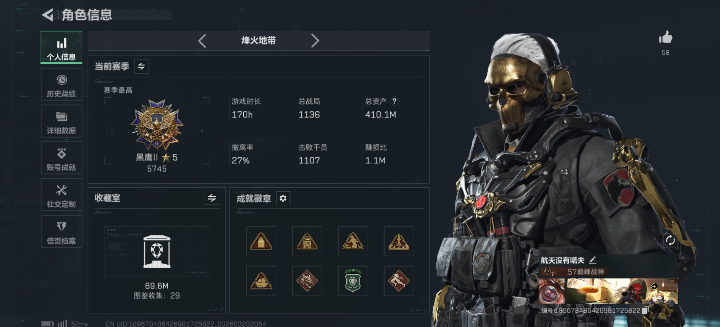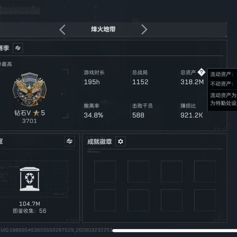 172m总资产-11913k哈夫币-60烽火等级-黑鹰-27战场等级-军士长