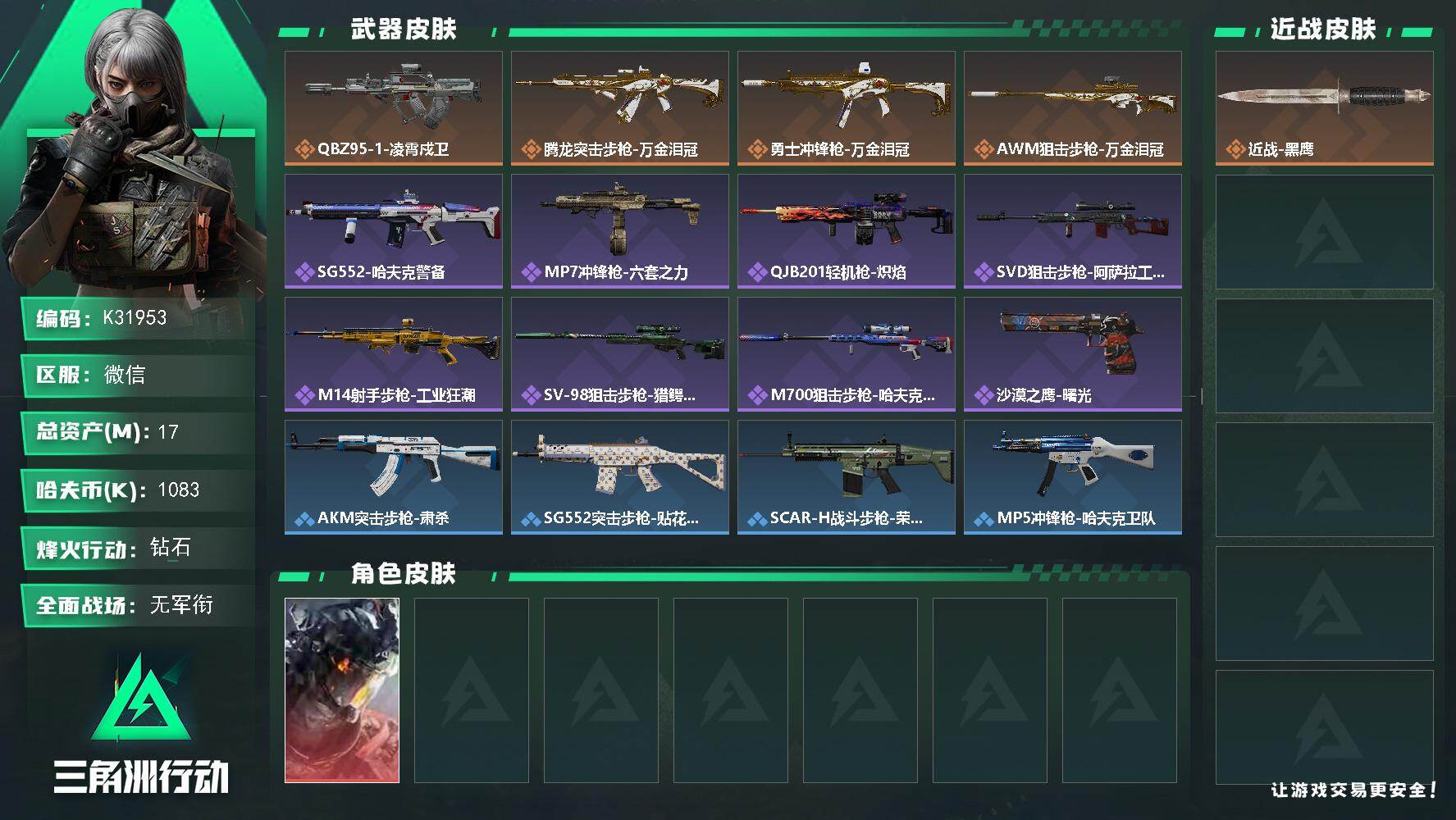 17m总资产-1083k哈夫币-39烽火等级-钻石-1战场等级-无军衔【干员