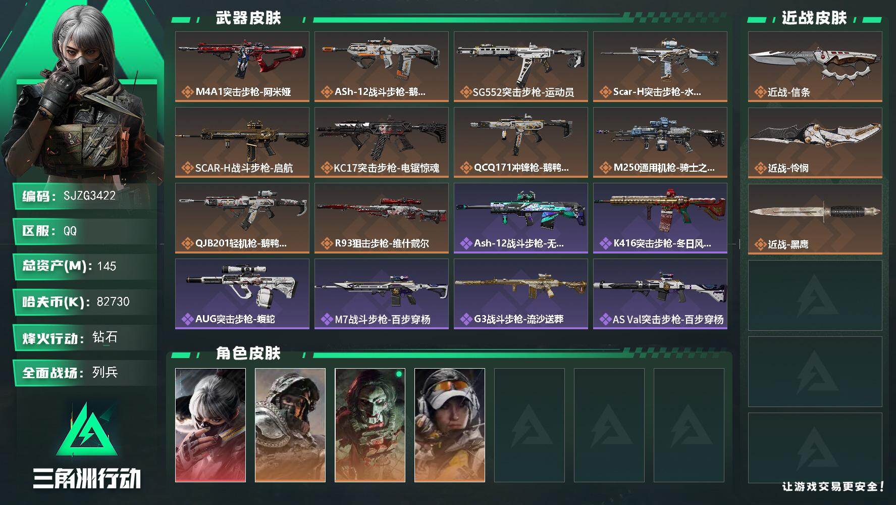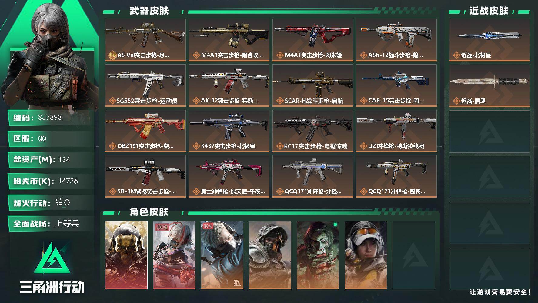 【SJ1000】行动等级:60 总资产:161M 哈夫币:1700W 近战武器