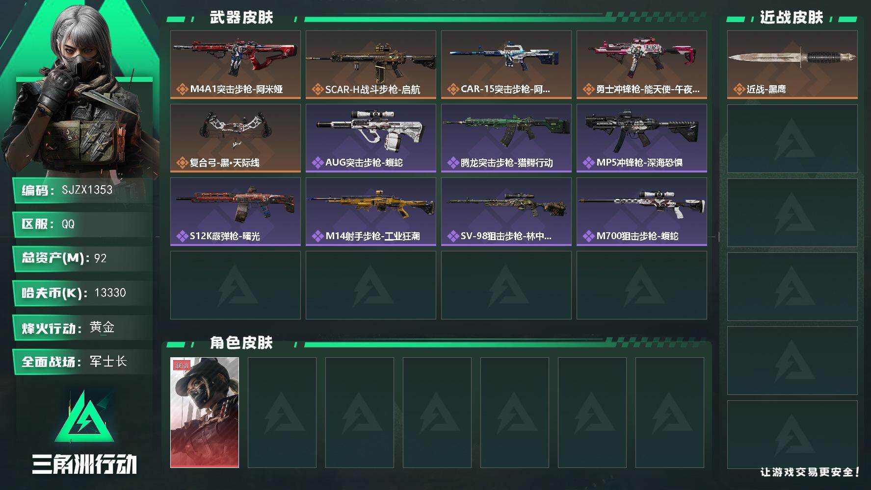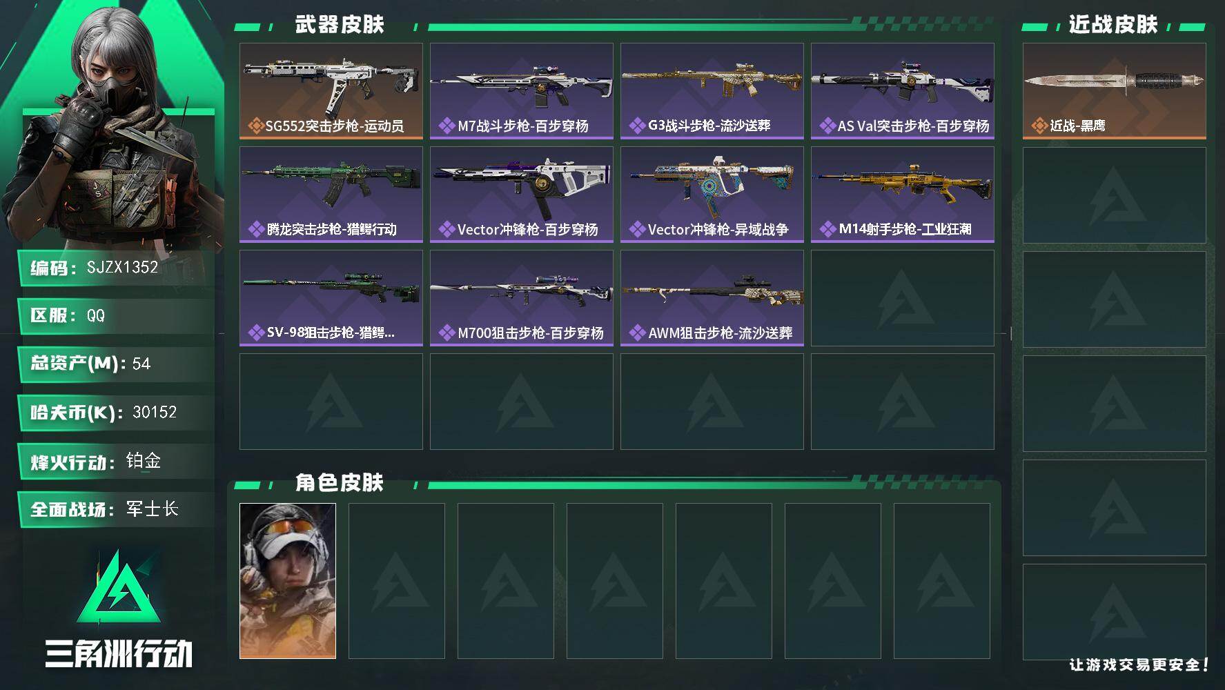 367m仓库 181m纯币 满体满负 3x3保险 70发AP 34m收藏室 仓库多红和装备 可二次