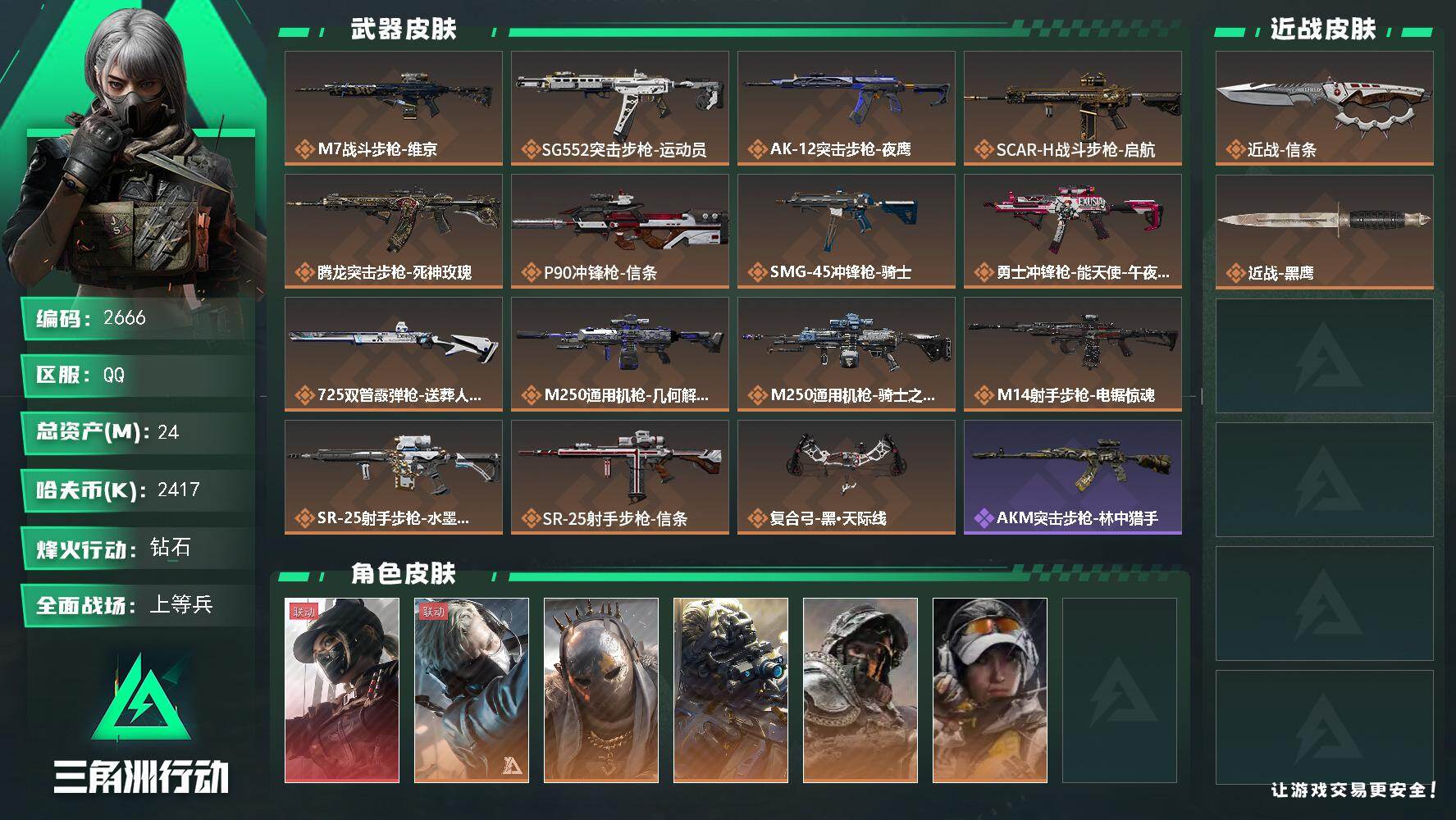 总资产(M):24M/哈夫币(K):2417K/哈夫币(K):2417K/传说枪皮数:15/全面战场