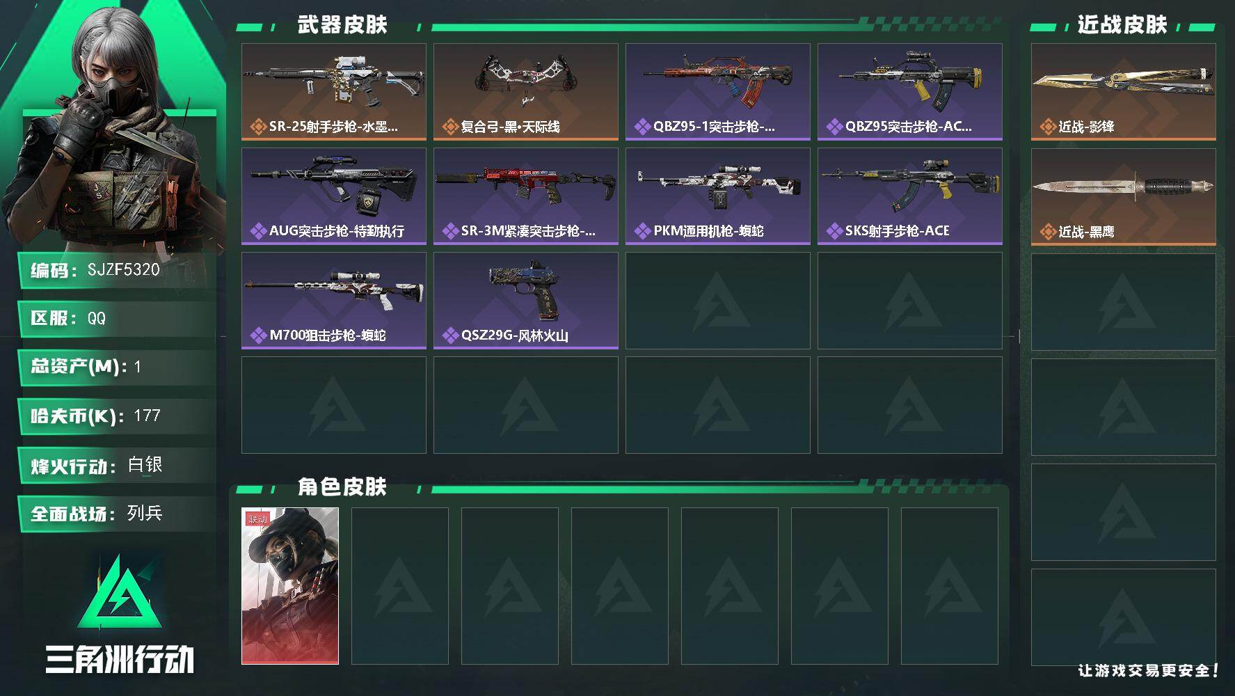 总资产(M):7M/哈夫币(K):5052K/哈夫币(K):5052K/传说枪皮数:5/全面战场等级
