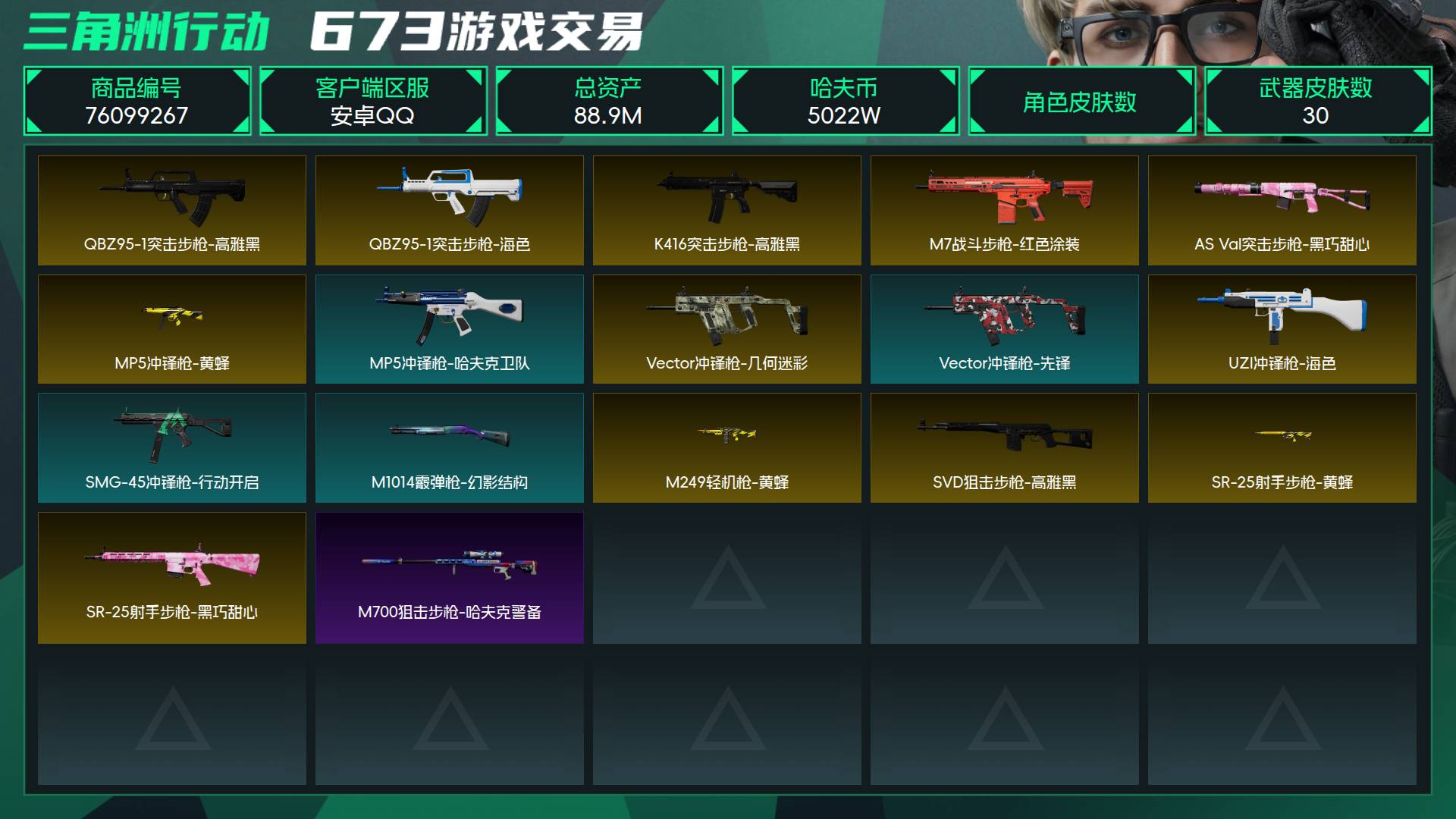绿色手打无污染,现金9千万开通行证了还有10发AW六套五套多多,制式卷也是满的没用