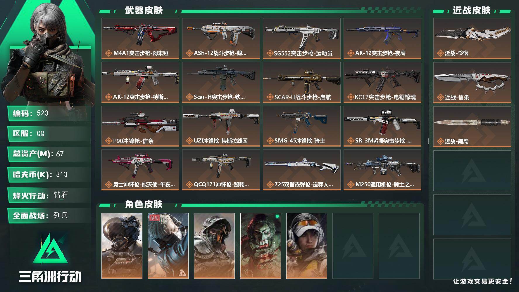 烽火段位青铜3 战场段位暂无段位 总资产100.8M 哈夫币8808W 近战1 载具1