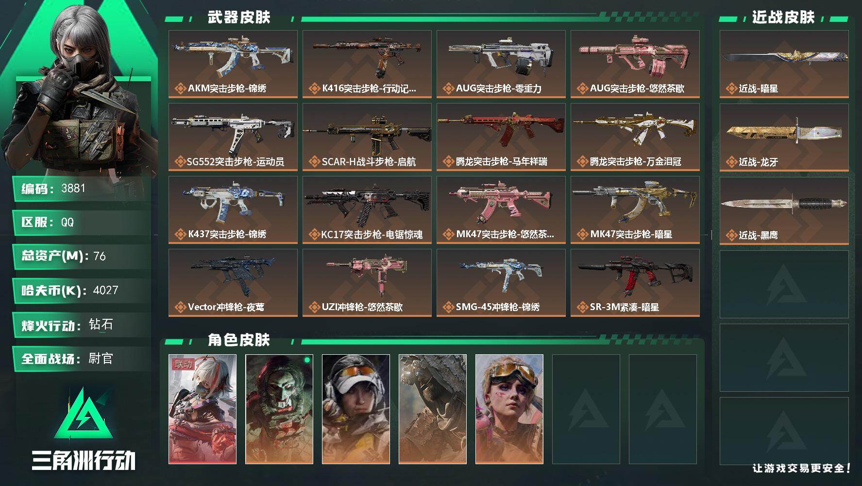 76m总资产-4027k哈夫币-60烽火等级-钻石-50战场等级-尉官【干员