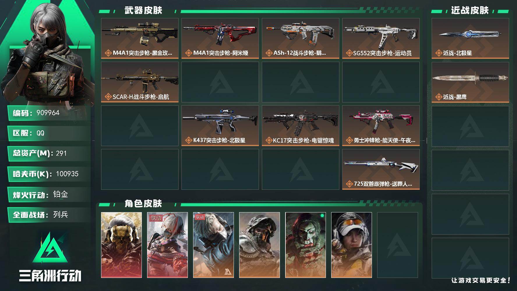 291m总资产-100935k哈伏币-60烽火等级-铂金-8战场等级-列兵【
