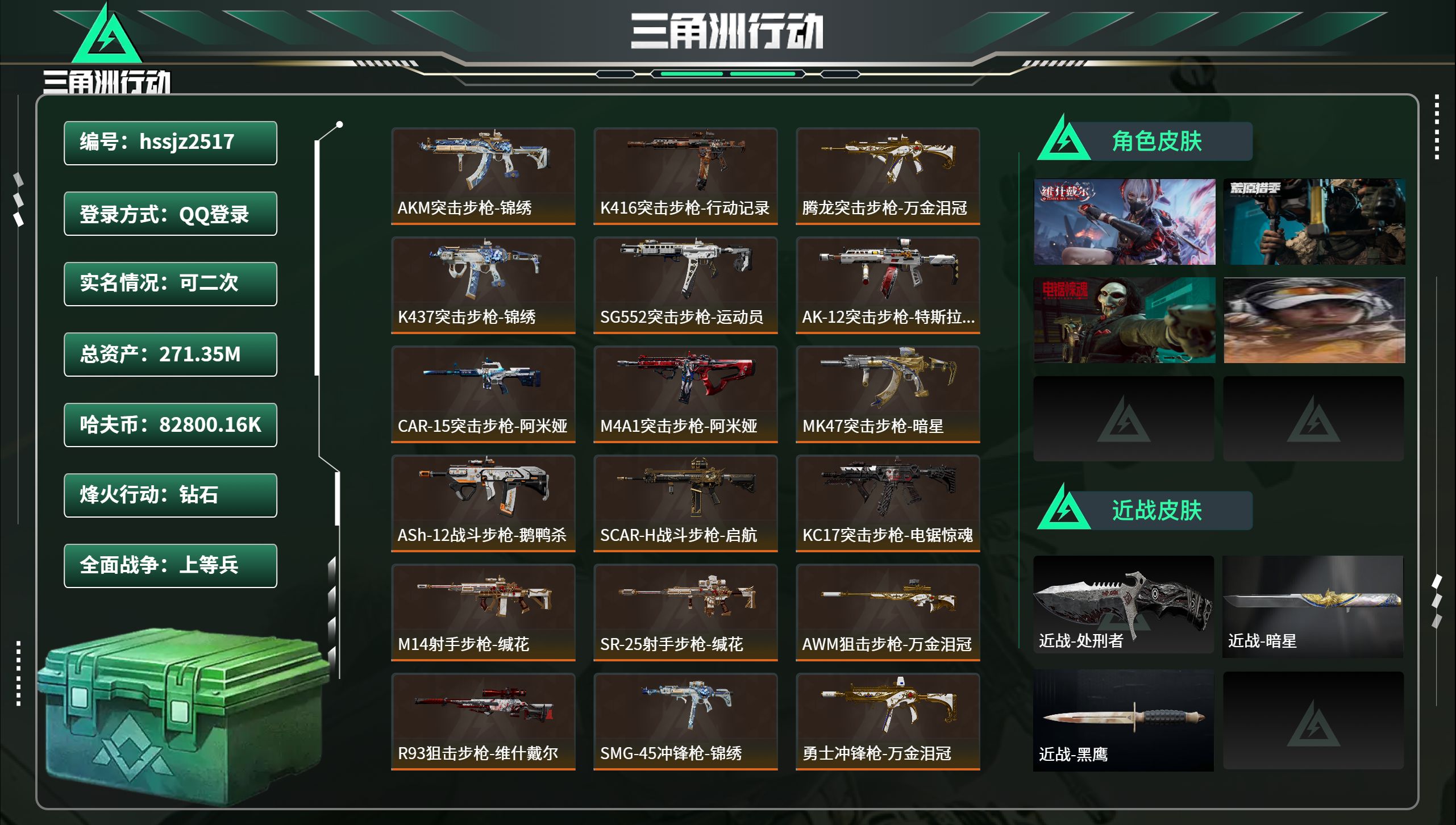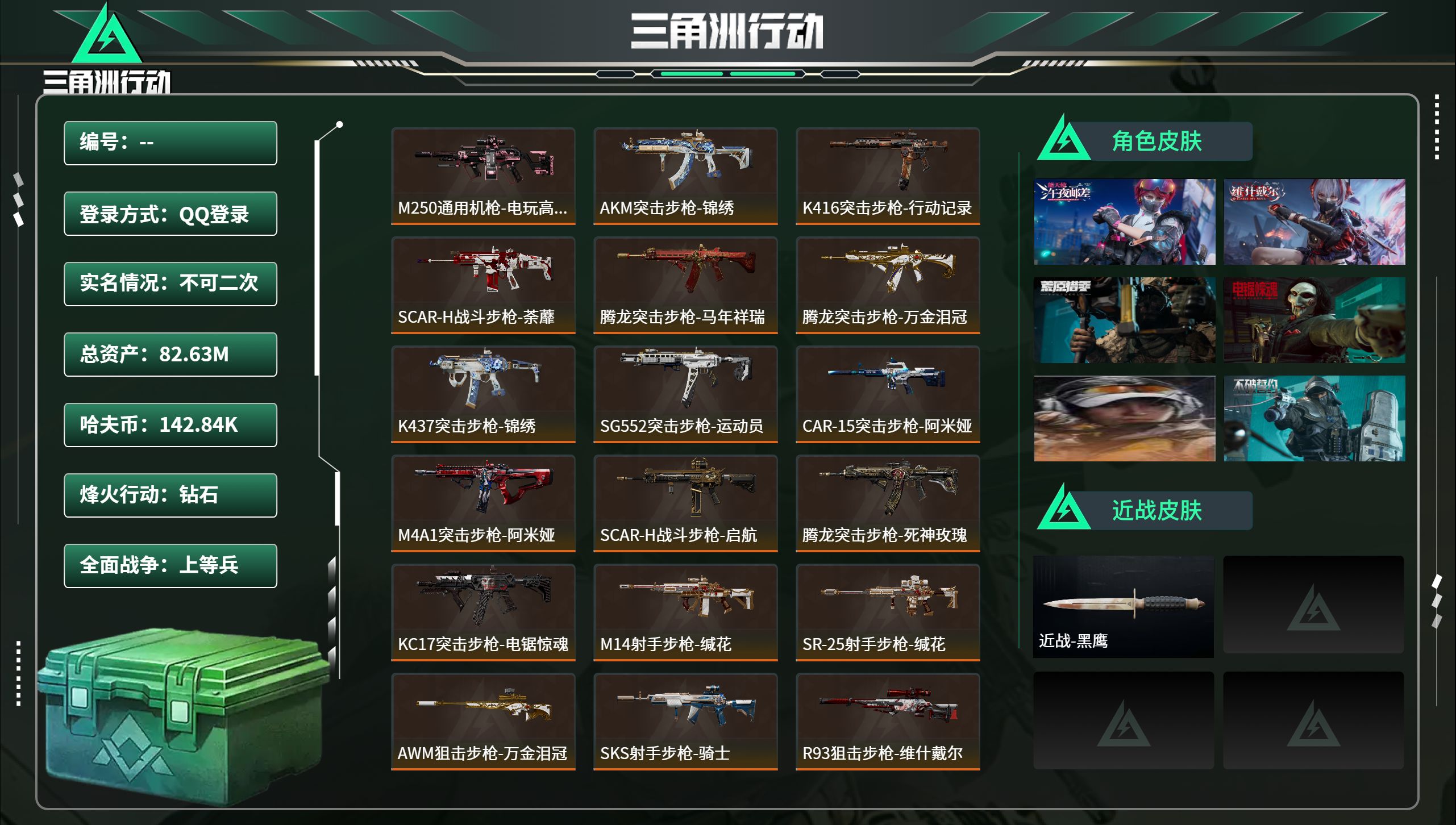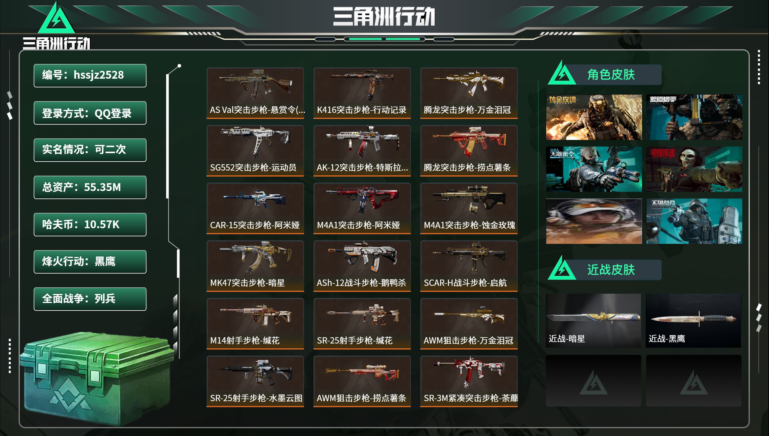 【SJ1519】184m总资产-2254k哈夫币-60烽火等级-黑鹰-10战场