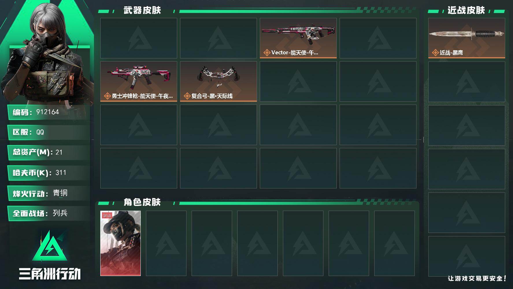 21m总资产-311k哈夫币-23烽火等级-青铜-8战场等级-列兵【干员外观