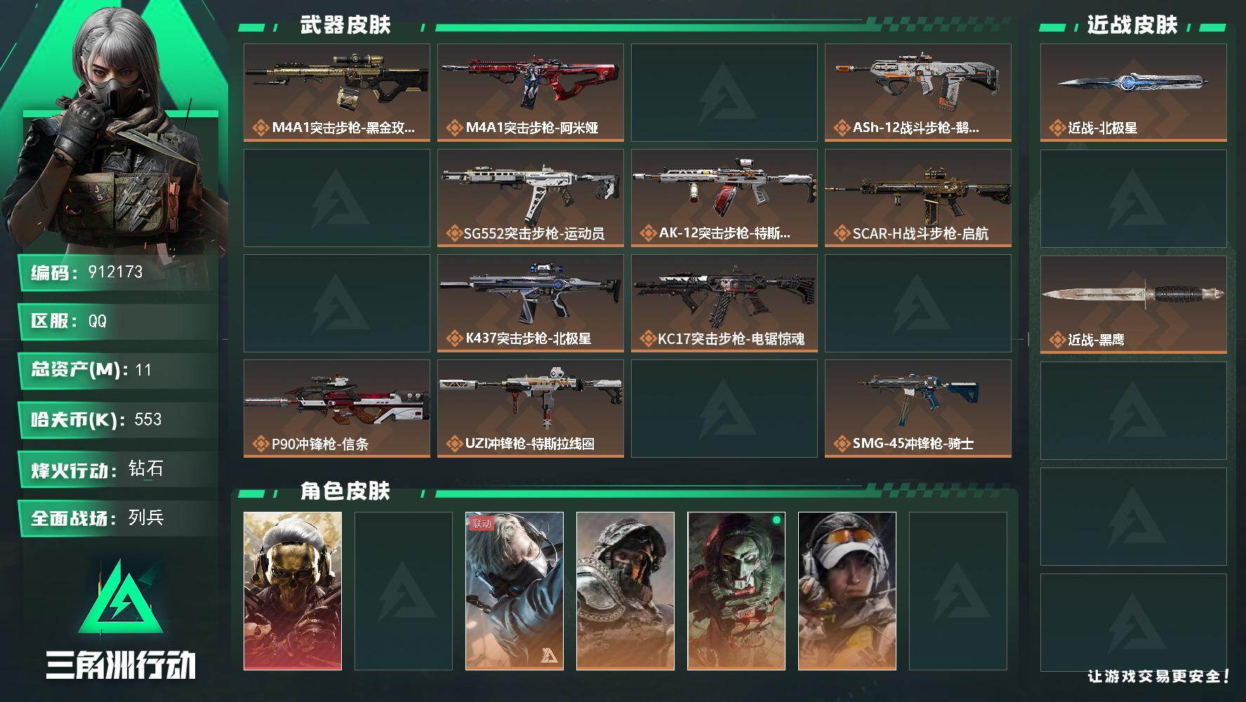 11m总资产-553k哈夫币-60烽火等级-钻石-14战场等级-列兵