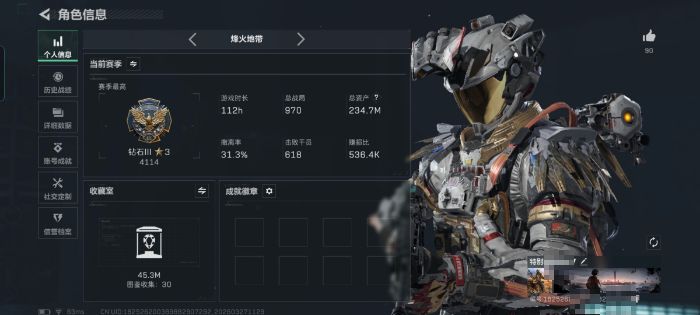 135m总资产-607k哈夫币-60烽火等级-钻石-12战场等级