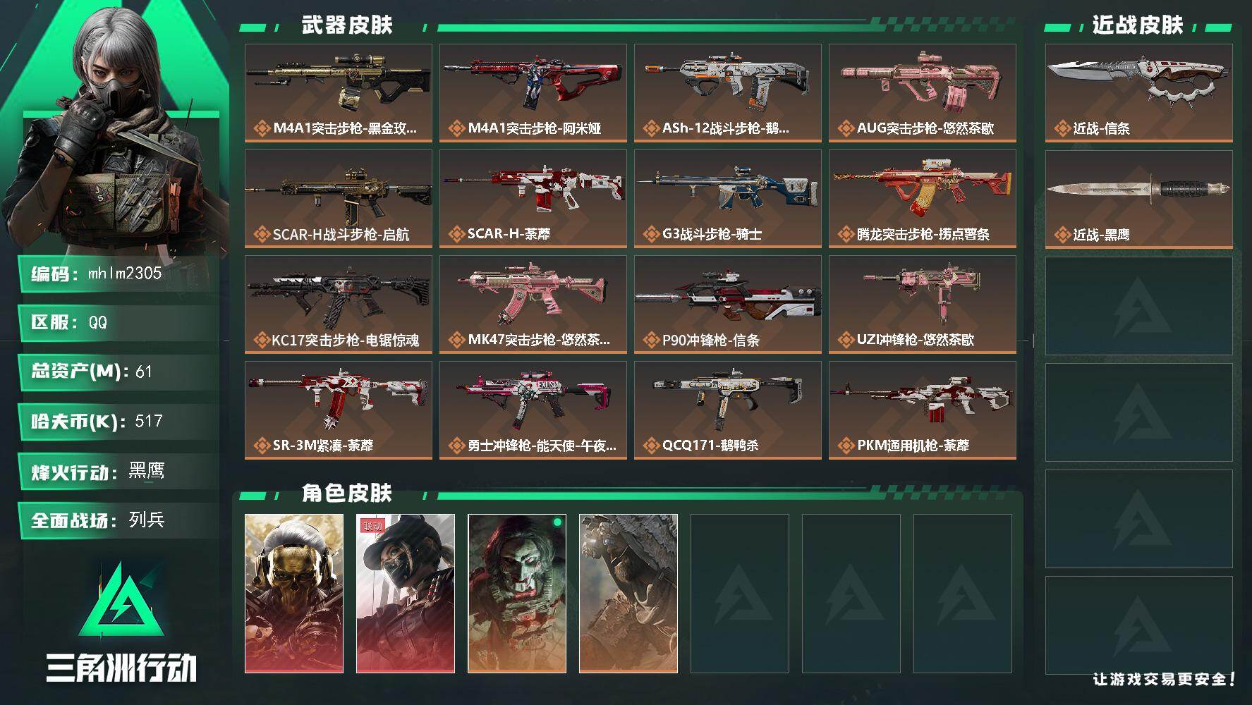61m总资产-517k哈夫币-60烽火等级-黑鹰-15战场等级-列兵