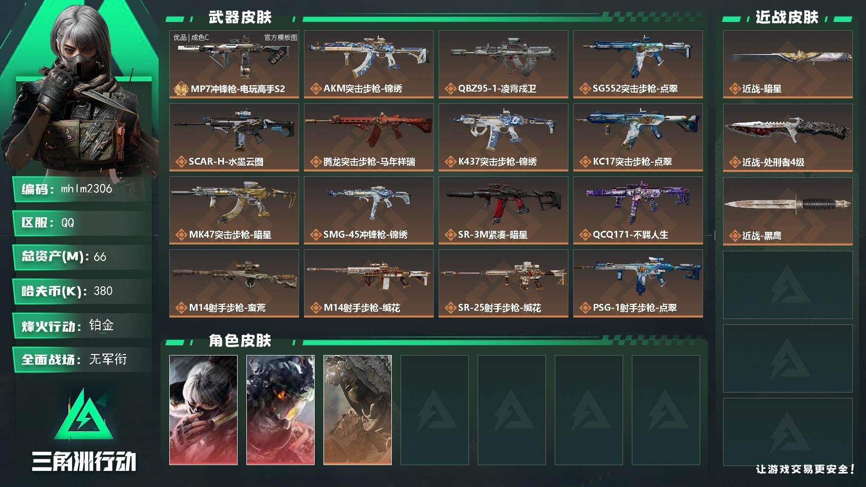 66m总资产-380k哈夫币-60烽火等级-铂金-1战场等级-无军衔