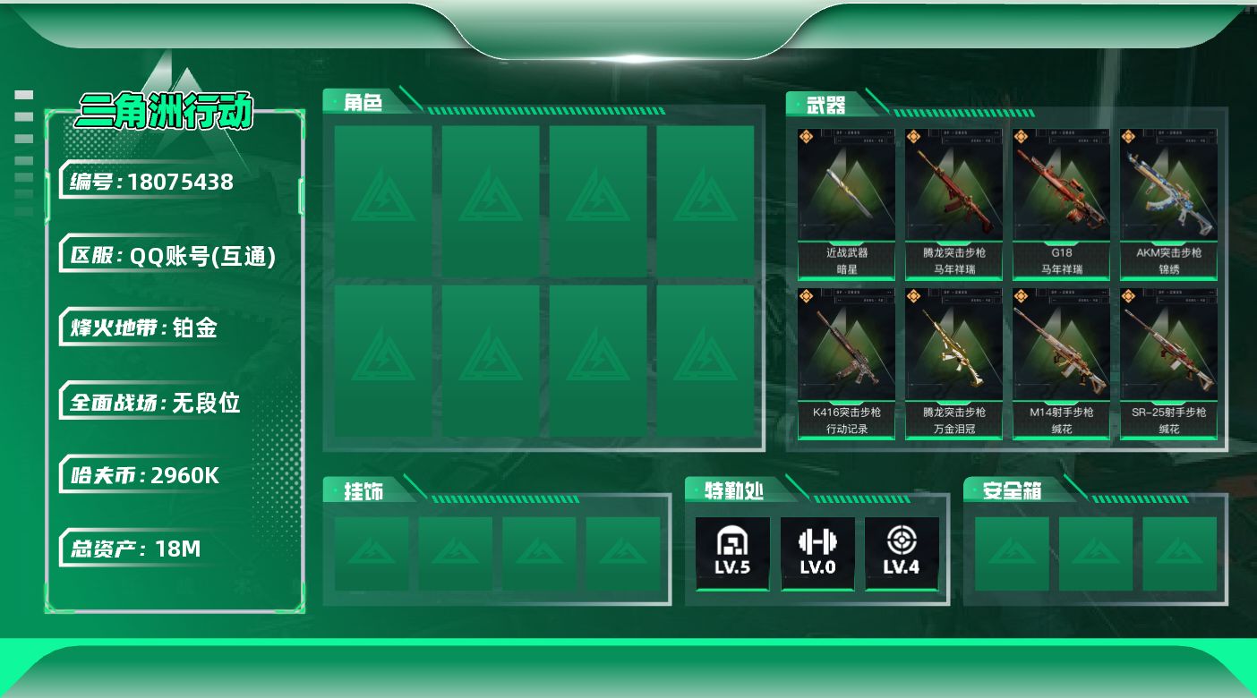 193m总资产-100k哈伏币-60烽火等级-黑鹰-20战场等级-列兵
