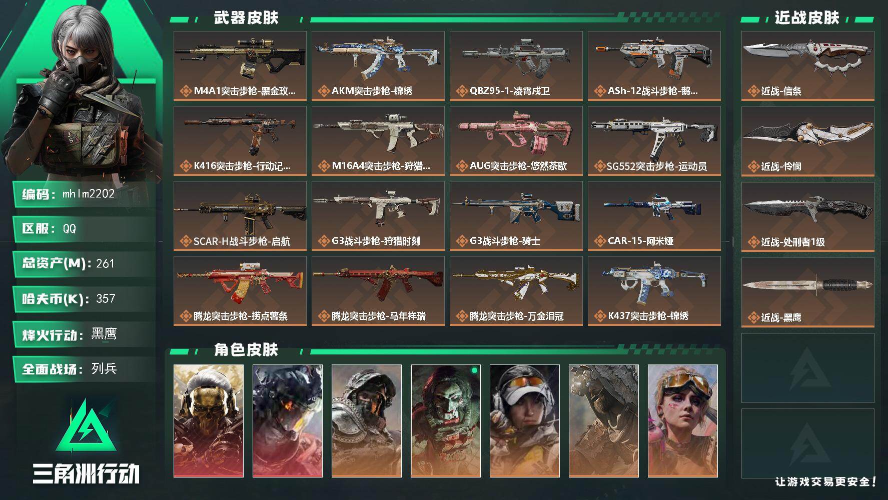 261m总资产-357k哈夫币-60烽火等级-黑鹰-9战场等级-列兵