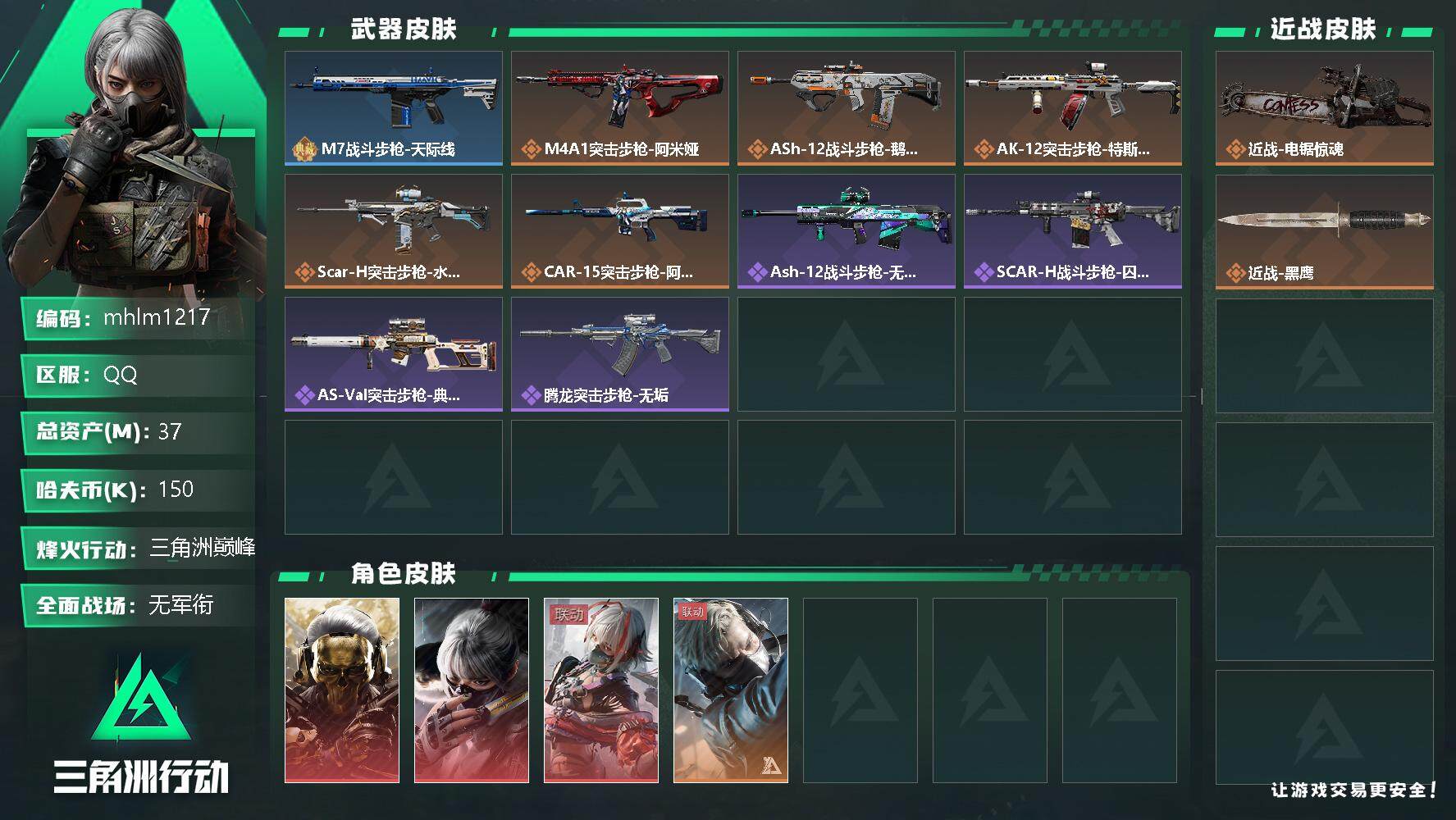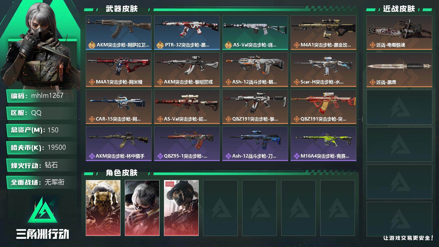 总资产:150.4M,哈夫币:1950W,武器皮肤172,烽火60级