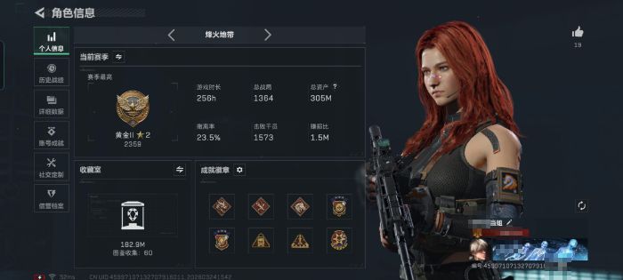 48m总资产-6789k哈夫币-60烽火等级-铂金-23战场等级-上等兵