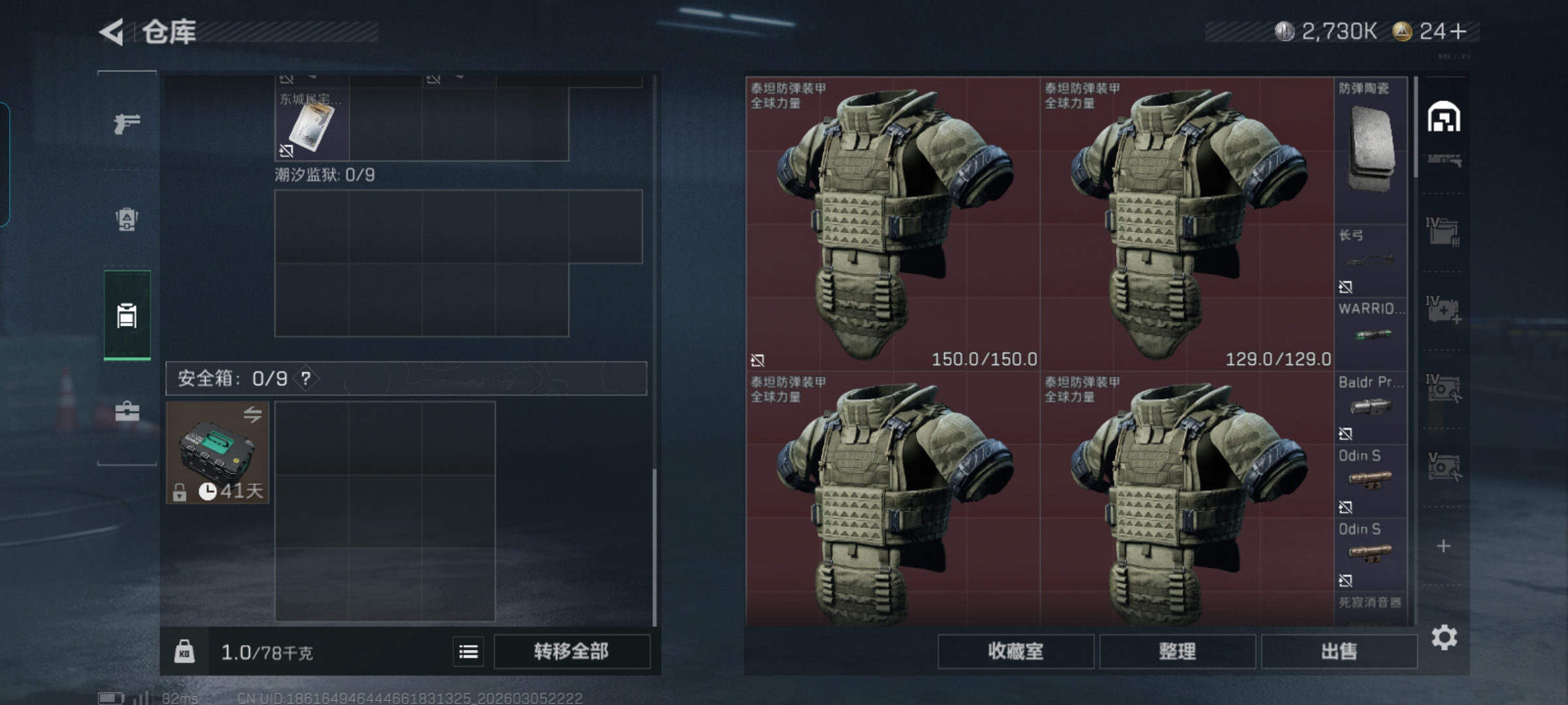 红皮威龙 7颗AW子弹 总资产2M,哈夫币25K,行动等级:37