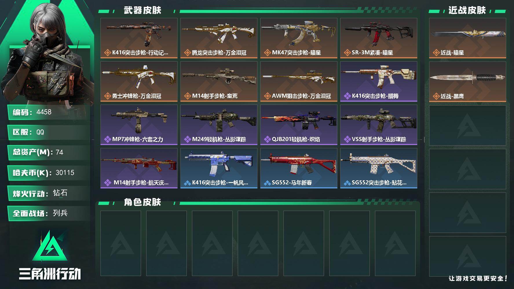 112m总资产-11k哈伏币-60烽火等级-钻石
