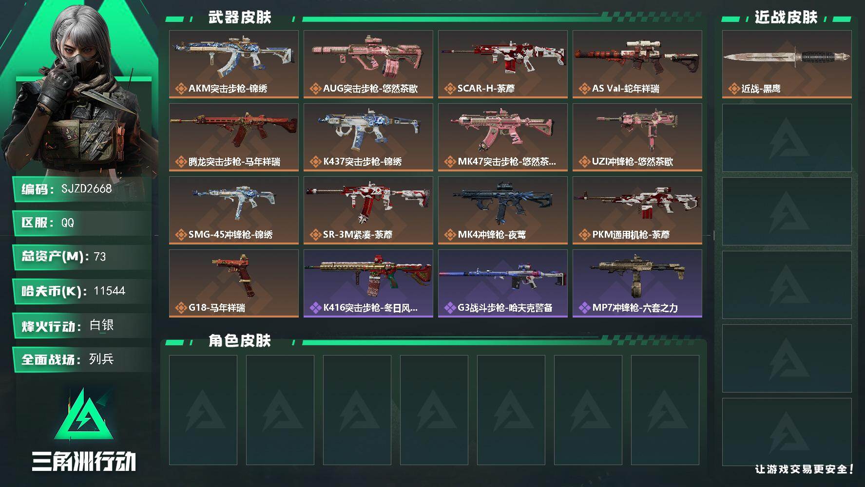 总资产(M):73M/哈夫币(K):11544K/